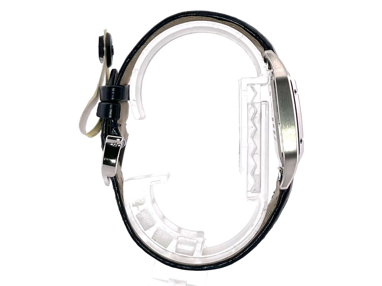 Gehäuse aus Edelstahl poliert, Gehäusedurchmesser 38 x 27,5 mm, Gehäusehöhe 7,3 mm, Edelstahl Lünette poliert, blaues Alligatorleder mit Dornschließe, silberfarbenes Zifferblatt mit Zeiger aus gebläutem Stahl, römische Ziffern, Quarzwerk, Saphirglas, verschraubter Boden aus Edelstahl, Wasserdicht bis zu 3 bar.
