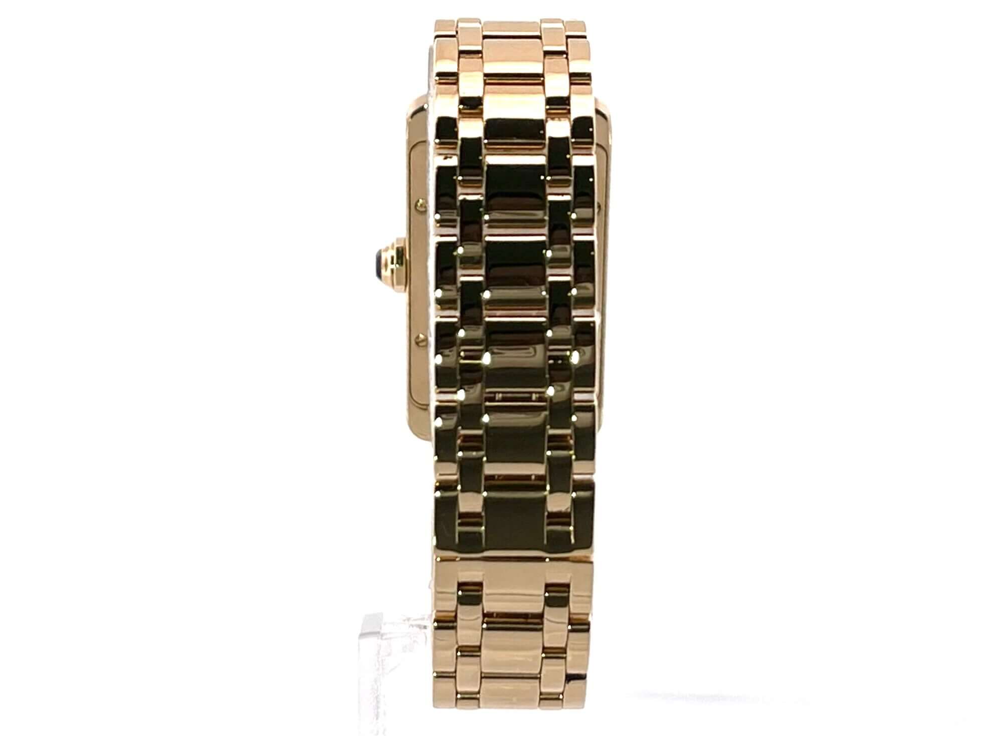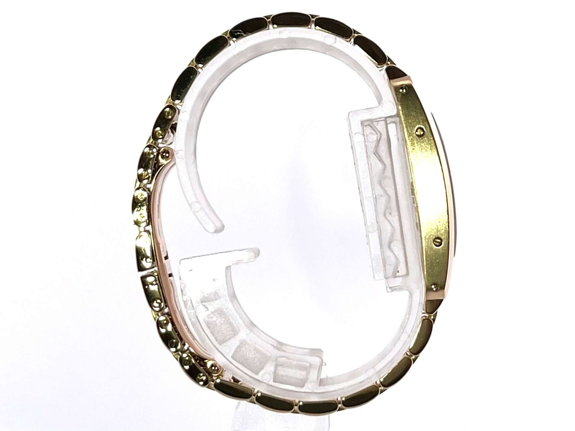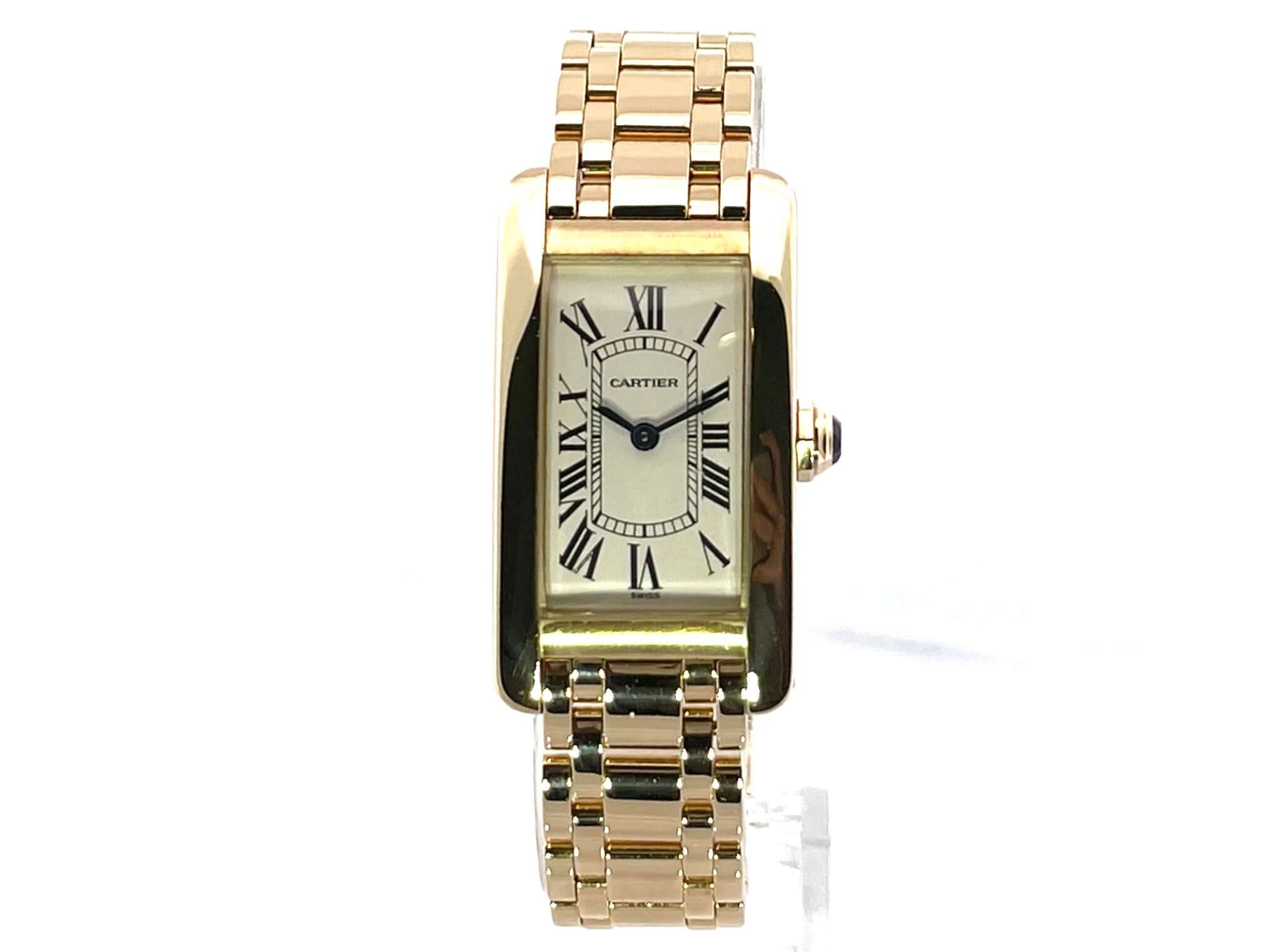 Gehäuse aus 18 kt Gelbgold poliert und satiniert, ca. 35 mm x 19 mm, 18 kt Gelbgold Armband mit Faltschließe, Zifferblatt silberfarben mit Zeiger aus gebläutem Stahl, römische Ziffern, Quarz, wasserdicht bis zu 3 bar.