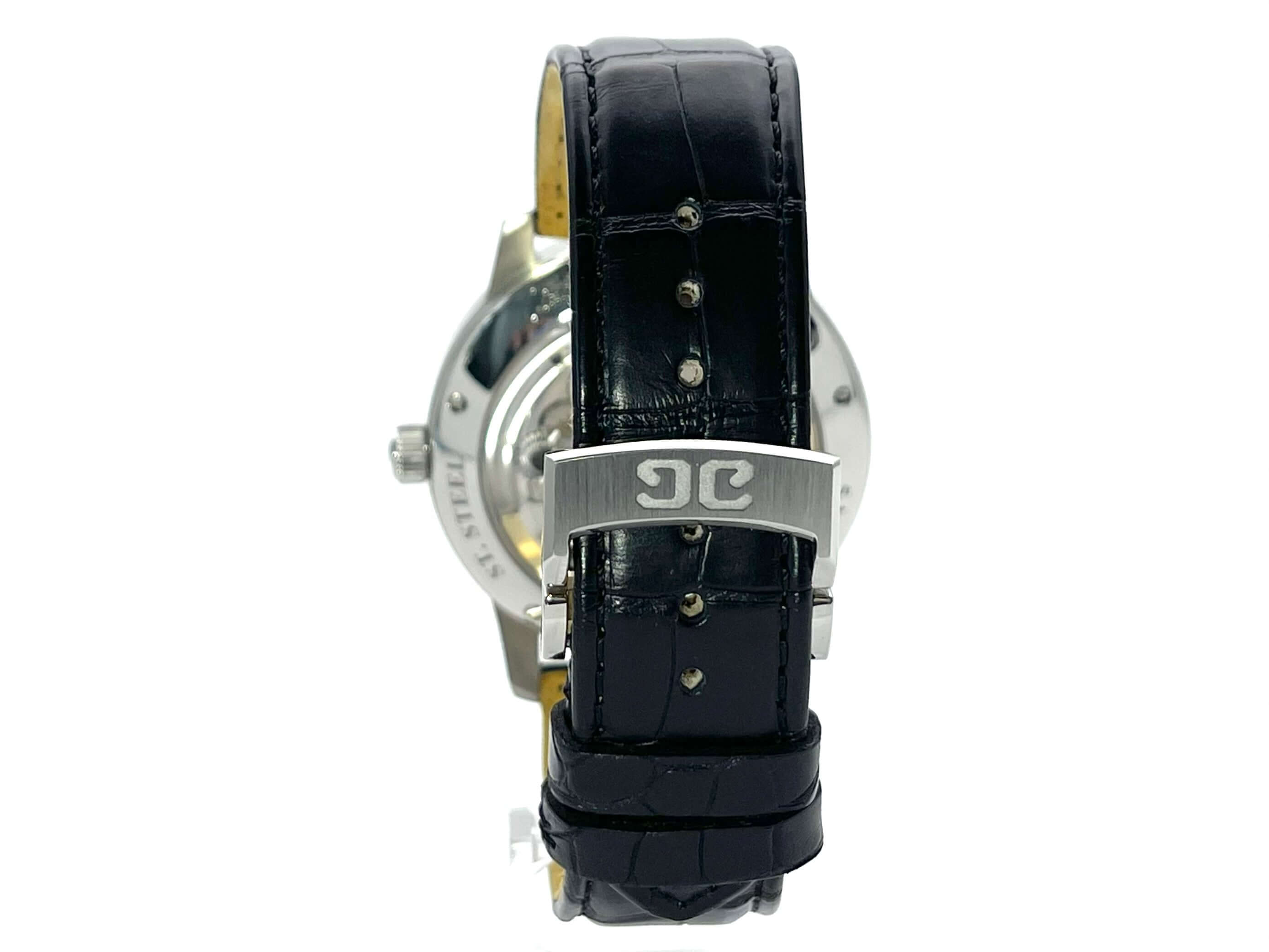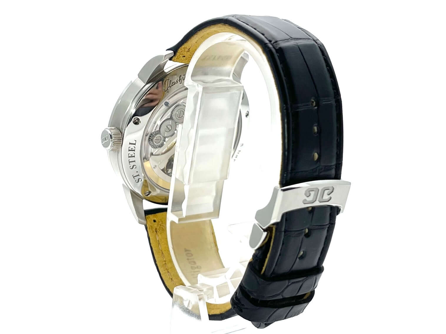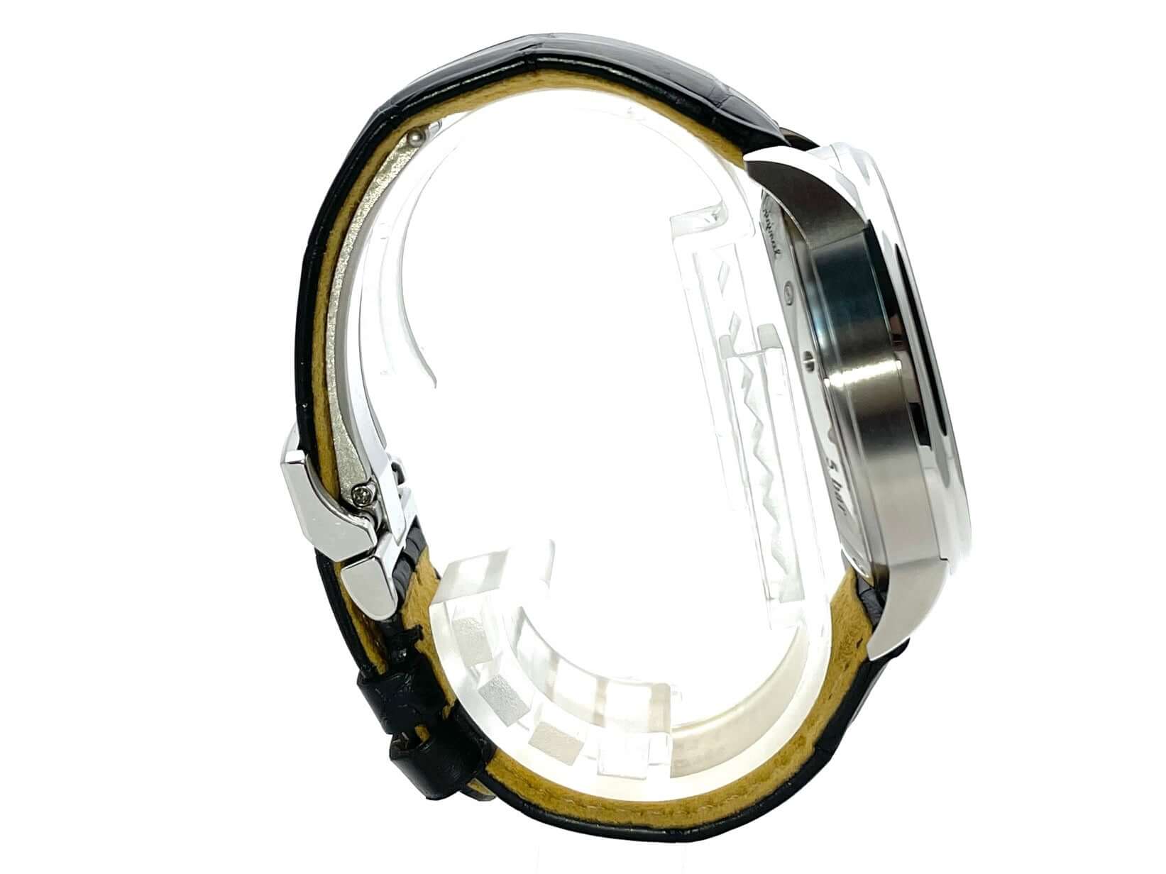 Gehäuse aus Edelstahl poliert, Gehäusedurchmesser 42 mm, Gehäusehöhe 12,2 mm, polierte Edelstahl Lünette, schwarzes Alligatorleder Armband mit Faltschließe, blaues Zifferblatt, Automatik Uhrwerk, Kaliber 36-04, 28.800 A/h, Gangreserve ca. 100 Stunden, Panoramadatum, Mondphase, Zentralsekunde, Saphirglas, Edelstahlboden mit Saphirglas, Wasserdicht bis zu 5 bar.