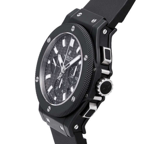Gehäuse Keramik, Gehäusedurchmesser 44 mm, Gehäusehöhe 14,50 mm, Lünette Keramik, schwarzes Zifferblatt mit aufgesetzten Leuchtindexen und Leuchtmarkierungen, Armband Kautschuk schwarz, Faltschließe aus Stahl mit schwarzer PVD Beschichtung, Automatikwerk, Manufakturkaliber HUB4100 mit 27 Steine, Schwingung 28.800 A/h, Gangreserve für ca. 42 Stunden, Datumsanzeige, Saphirglas entspiegelt, Saphirglasboden verschraubt, Wasserdicht bis 10 bar.