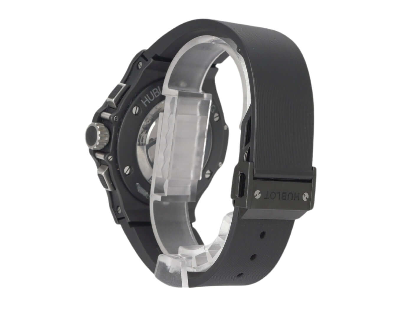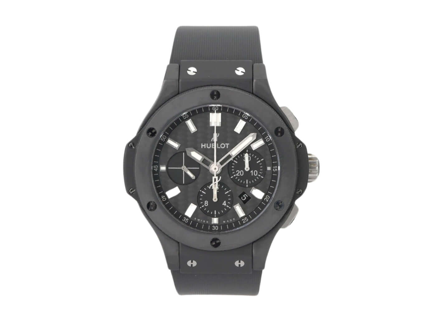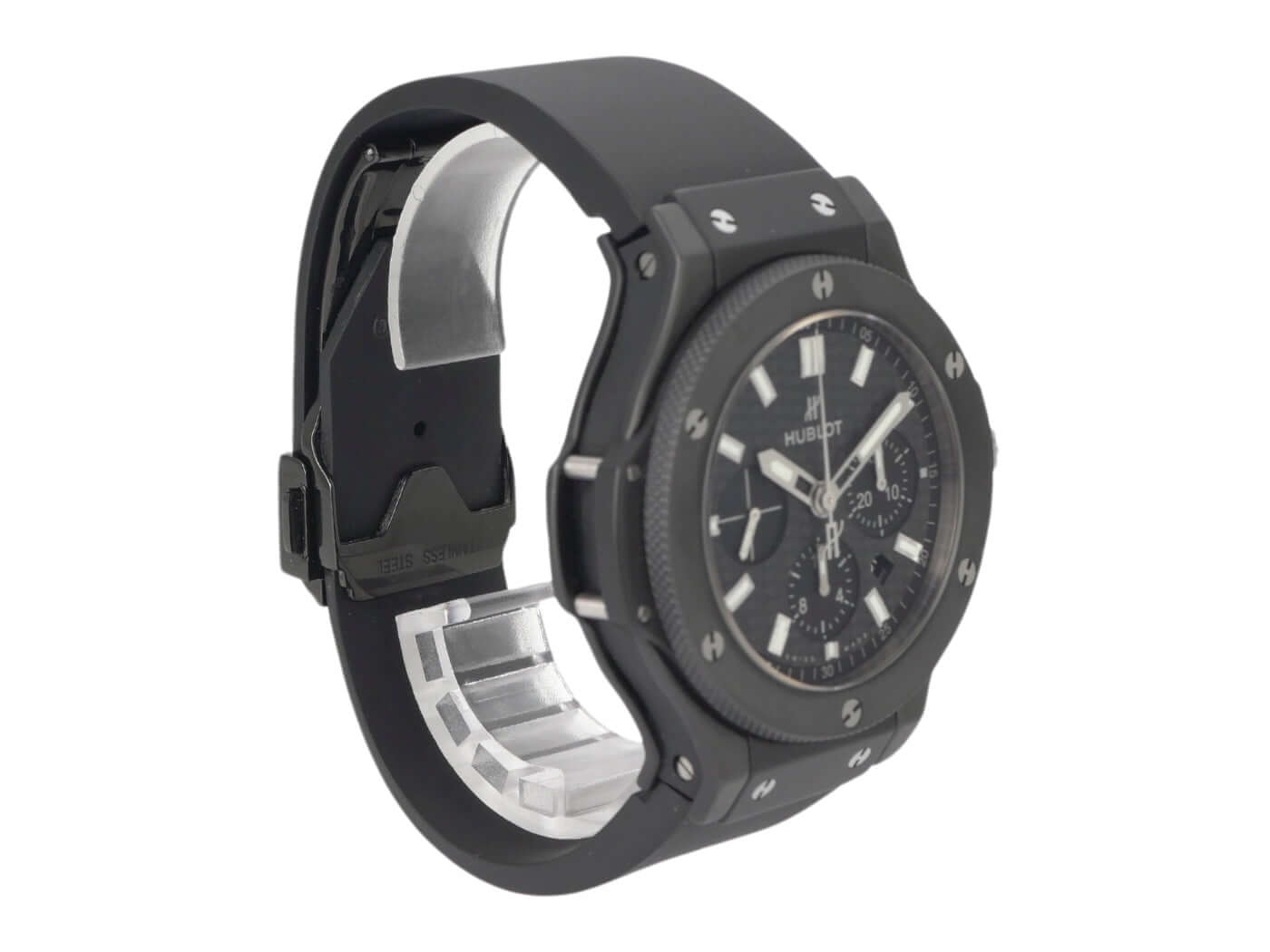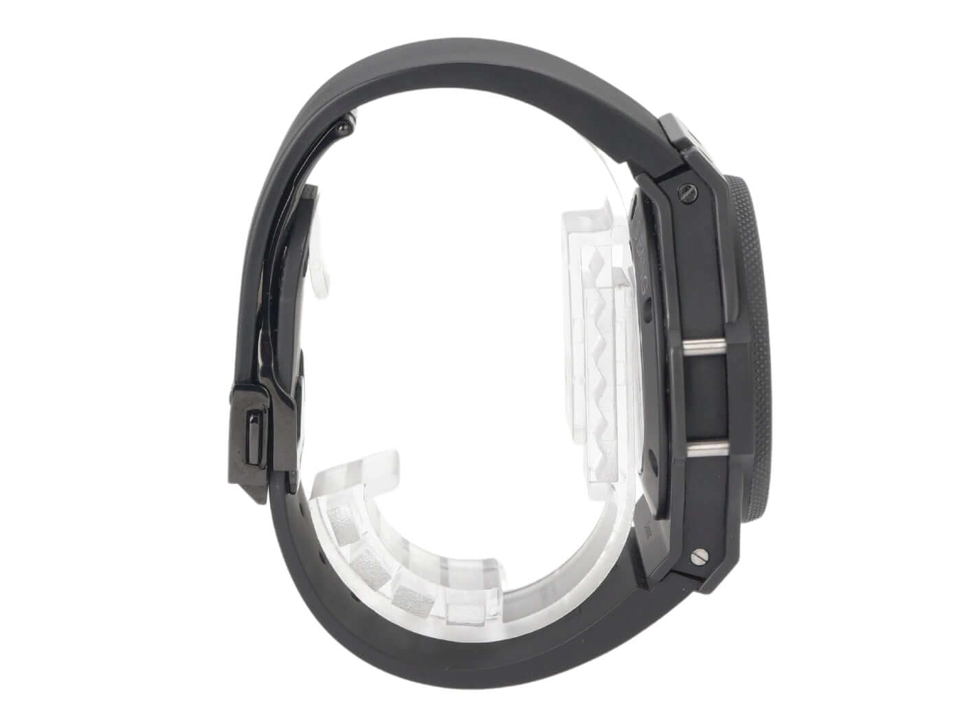 Gehäuse Keramik, Gehäusedurchmesser 44 mm, Gehäusehöhe 14,50 mm, Lünette Keramik, schwarzes Zifferblatt mit aufgesetzten Leuchtindizes, schwarzes Kautschukband, Faltschließe aus Stahl mit schwarzer PVD Beschichtung, Automatikwerk, Manufakturkaliber HUB4100 mit 27 Steine, Schwingung 28.800 A/h, Gangreserve für ca. 42 Stunden, Datumsanzeige, Saphirglas entspiegelt, Saphirglasboden verschraubt, Wasserdicht bis 10 bar.