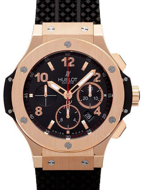 Gehäuse 18 kt Rotgold satiniert, Gehäusedurchmesser 44 mm, Gehäusehöhe 14,50 mm, 18 kt Rotgold Lünette, schwarzes Zifferblatt mit arabischen Zahlen und Leuchtindexen aus Rotgold, satinierte Rotgold Zeiger, Kautschuk Armband in schwarz mit 18 kt Rotgold Faltschließe, Automatikwerk, Manufakturkaliber HUB4100 mit 27 Steine, Schwingung 28.800 A/h, Gangreserve für ca. 42 Stunden, Datumsanzeige, Saphirglas entspiegelt, Saphirglasboden verschraubt, Wasserdicht bis 10 bar.