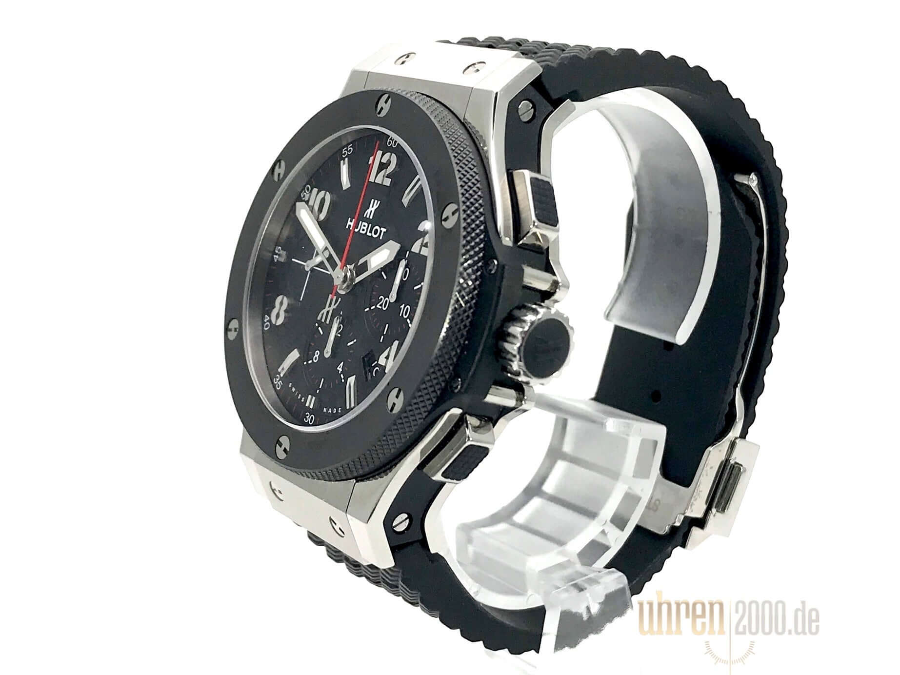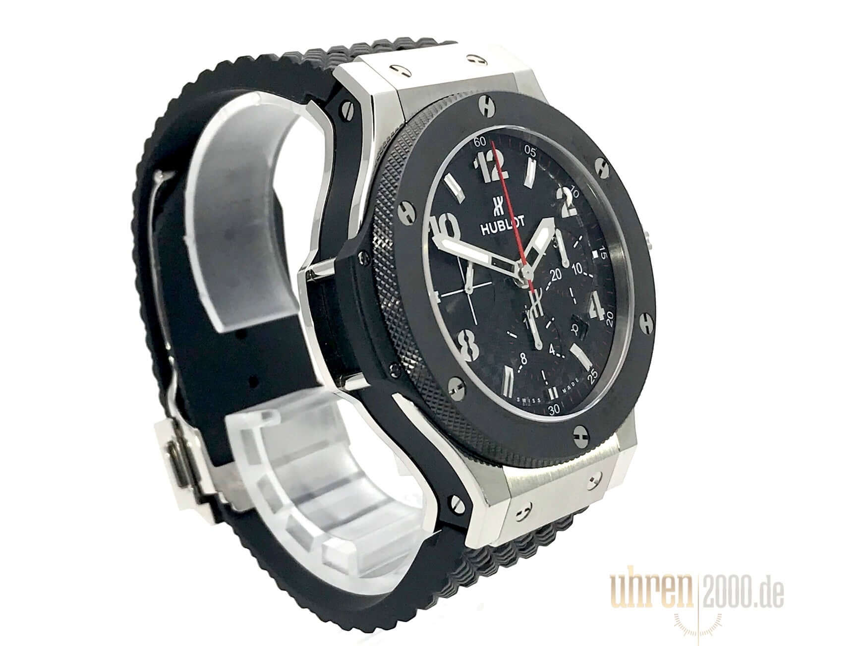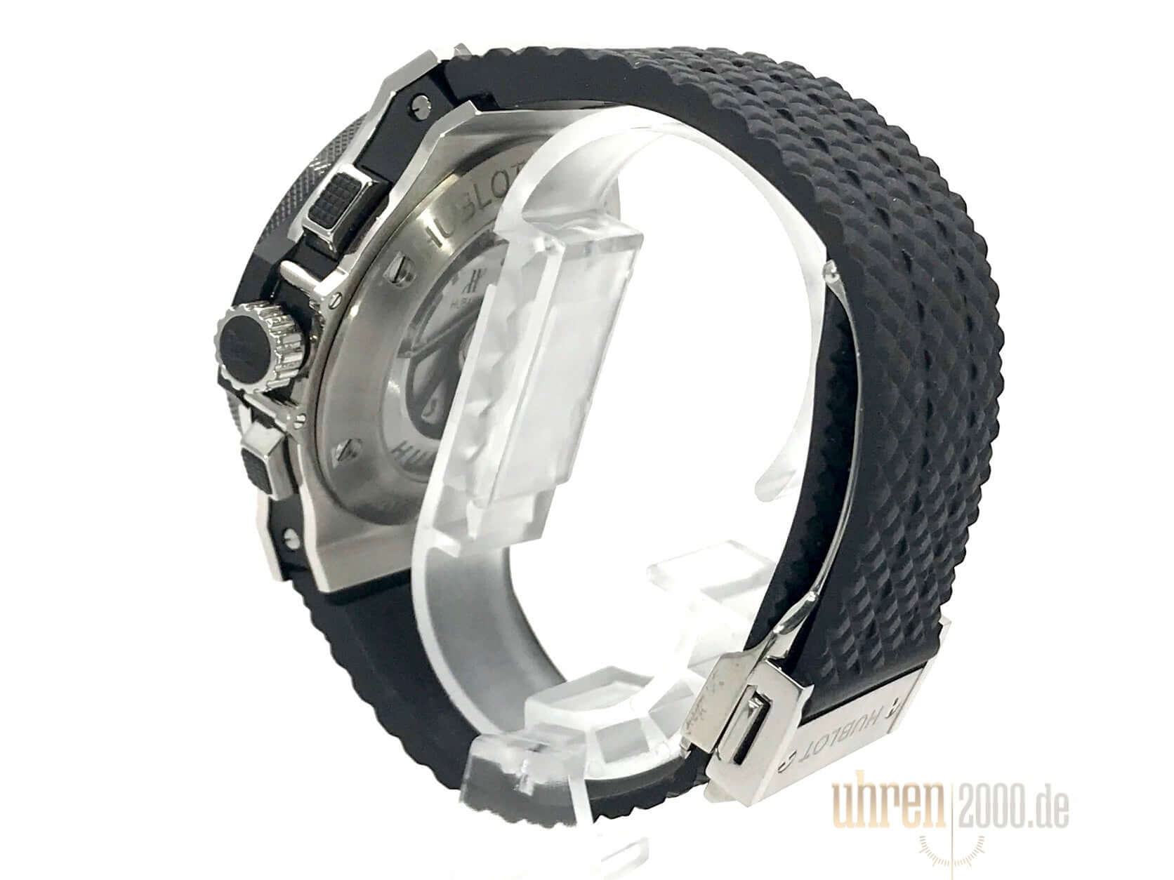 Gehäuse aus Edelstahl, Gehäusedurchmesser 44 mm, Gehäusehöhe 14,50 mm, Keramik Lünette, schwarzes Zifferblatt mit Arabischen Zahlen und Leuchtindizes, schwarzes Kautschukband mit Faltschließe, Automatikwerk, Manufakturkaliber HUB4100 mit 27 Steine, Schwingung 28.800 A/h, Gangreserve für ca. 42 Stunden, Datumsanzeige, Saphirglas entspiegelt, Saphirglasboden verschraubt, Wasserdicht bis 10 bar.