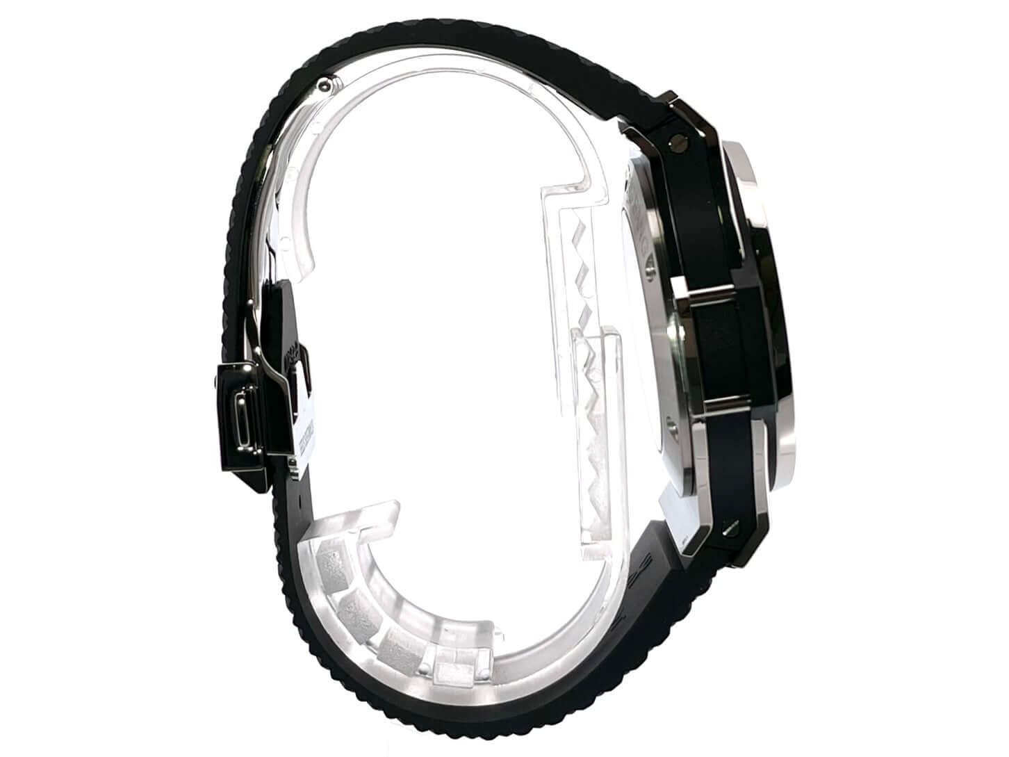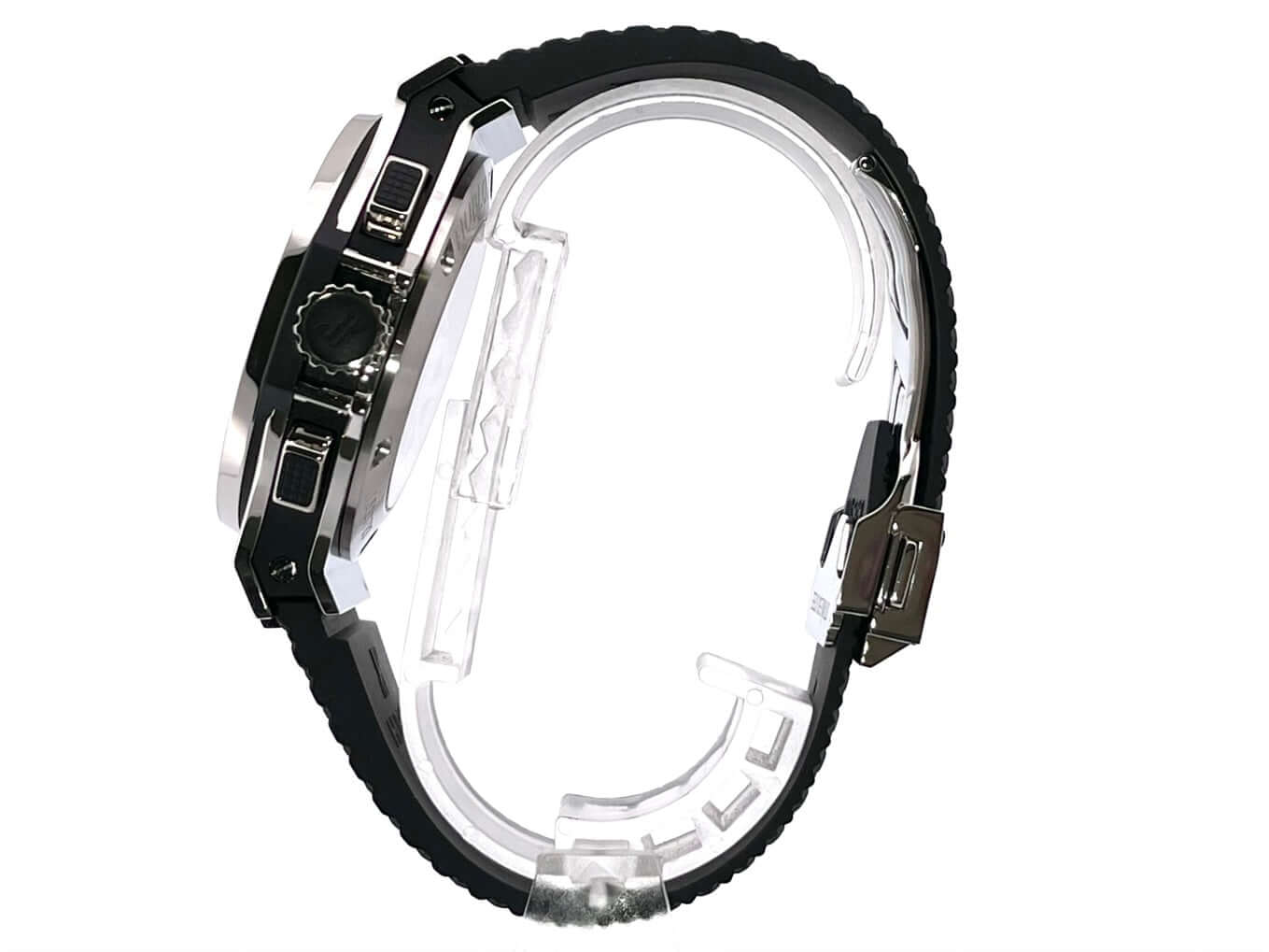Gehäuse Edelstahl, Gehäusedurchmesser 44 mm, Gehäusehöhe 14,50 mm, Edelstahl Lünette satiniert, schwarzes Zifferblatt mit Arabischen Zahlen und Leuchtindexen, schwarzes Kautschuk Armband mit Faltschließe, Automatikwerk, Manufakturkaliber HUB4100 mit 27 Steine, Schwingung 28.800 A/h, Gangreserve für ca. 42 Stunden, Datumsanzeige, Saphirglas entspiegelt, Saphirglasboden verschraubt, Wasserdicht bis 10 bar.