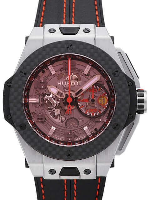 Gehäuse aus Titan, Gehäusedurchmesser 45 mm, Lünette aus Carbon, transparentes Zifferblatt mit arabischen Ziffern, schwarzes Kautschuk / Leder mit roter Ziernaht und Faltschließe, Automatikwerk, Manufakturkaliber HUB1241 mit 38 Steine, Schwingung 28.800 A/h, Gangreserve für ca. 72 Stunden, Datumsanzeige, Saphirglas entspiegelt, Saphirglasboden verschraubt, Wasserdicht bis 10 bar, Limitiert auf 1.000 Stück.