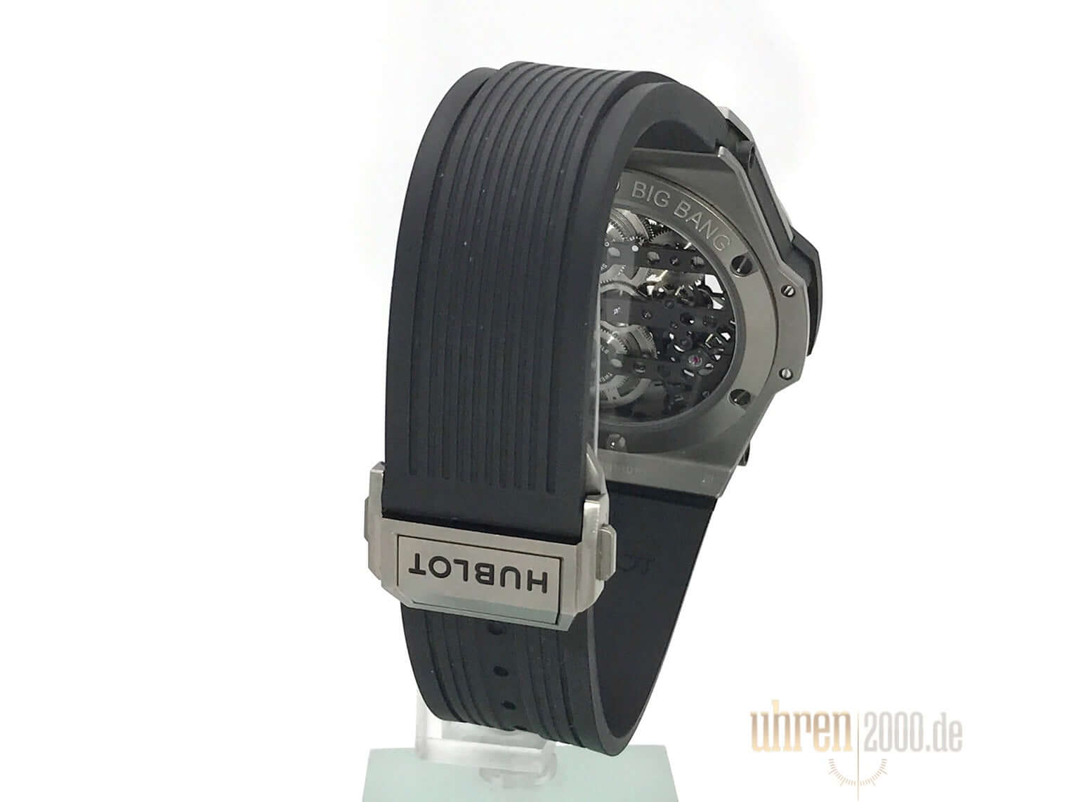 Gehäuse aus Titan, Gehäusedurchmesser 45 mm, Titan Lünette, transparentes Zifferblatt, schwarzes Kautschuk Armband mit Faltschließe aus Titan, Handaufzug, Manufakturkaliber UNICO HUB1201, Gangreserve für ca. 240 Stunden, Gangreserveanzeige, Saphirglas entspiegelt, Saphirglasboden verschraubt, Wasserdicht bis 10 bar.