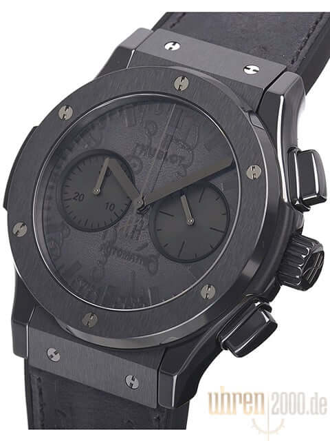 Gehäuse Keramik poliert und satiniert, Gehäusedurchmesser 45 mm, Lünette Keramik poliert und satiniert, schwarzes Leder Zifferblatt, schwarzes Kautschuk / Lederarmband mit Faltschließe, Automatikwerk, Manufakturkaliber HUB1143 mit 59 Steine, Gangreserve für ca. 42 Stunden, Datumsanzeige, Saphirglas entspiegelt, Saphirglasboden verschraubt und graviert, Wasserdicht bis 5 bar, limitiert auf 250 Stück.