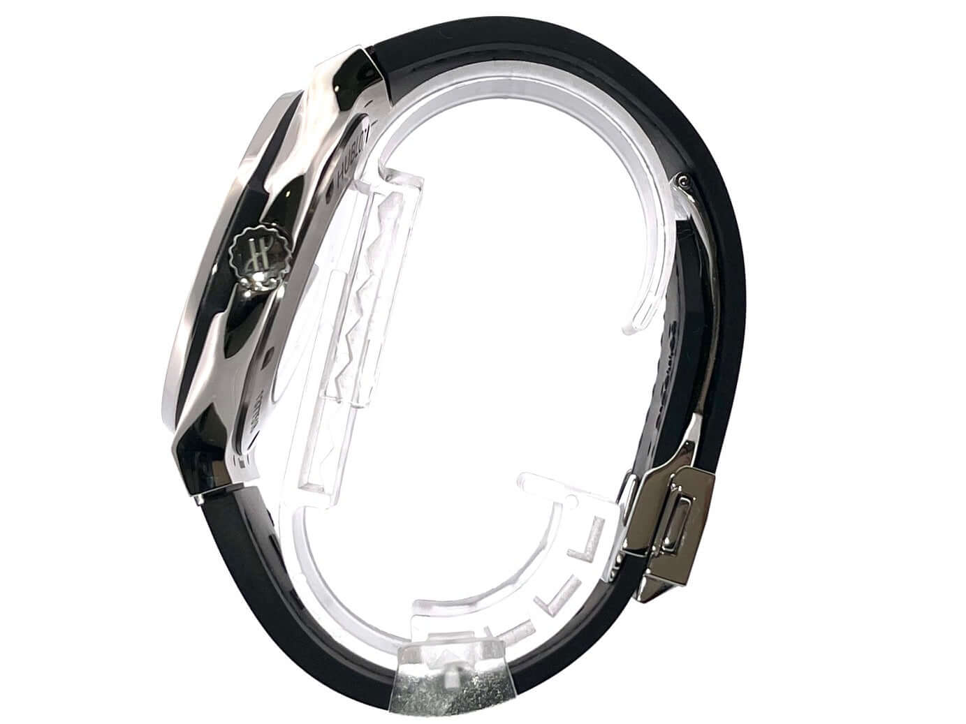 Gehäuse aus Titan poliert und satiniert, Gehäusedurchmesser 45 mm, Titan Lünette poliert und satiniert, grünes Zifferblatt, schwarzes Kautschukarmband mit grünem Alligatorlederinlay und Faltschließe, Automatikwerk, Kaliber HUB1112 mit 21 Steine, Gangreserve für ca. 42 Stunden, Datumsanzeige, Saphirglas entspiegelt, Saphirglasboden verschraubt und graviert, Wasserdicht bis 5 bar.