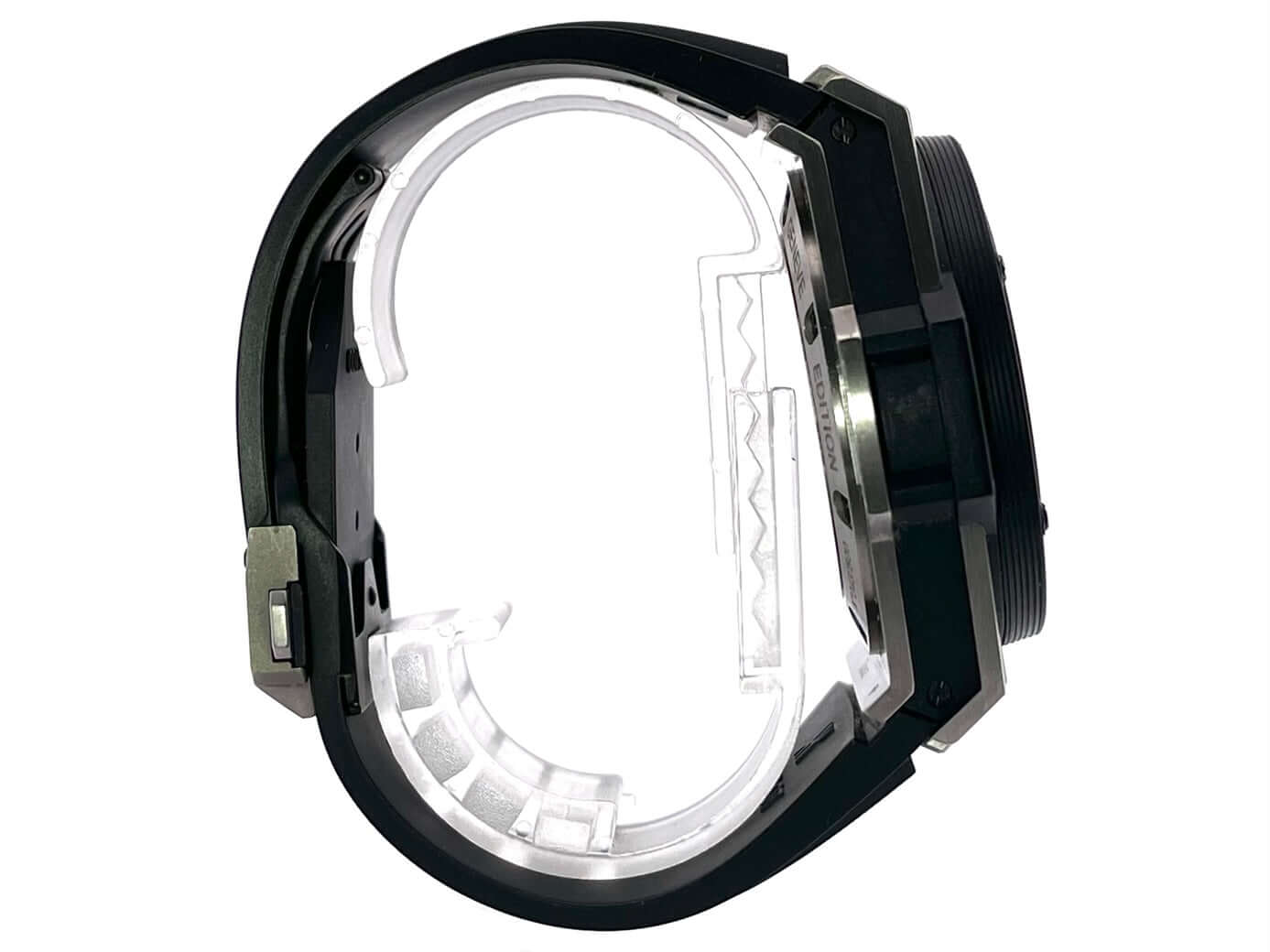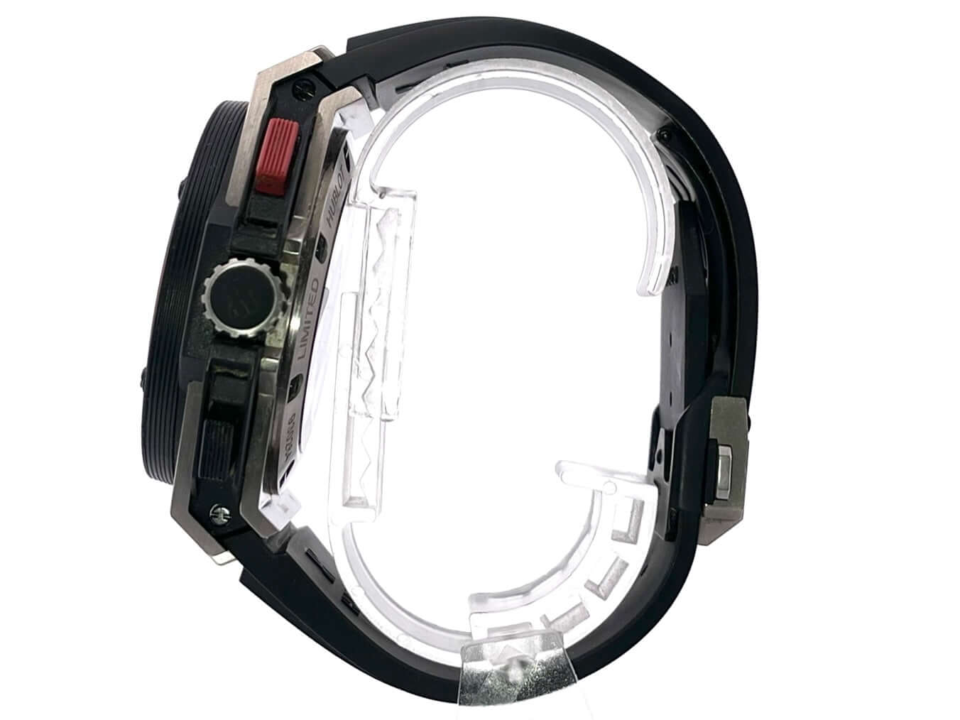 Gehäuse aus Titan poliert und satiniert, Gehäusedurchmesser 48 mm, Keramik Lünette satiniert, transparentes Zifferblatt mit Leuchtindizes, schwarzes Kautschukband mit Faltschließe Titan, Automatikwerk, HUB4245, Schwingung 28.800 A/h, Gangreserve für ca. 42 Stunden, Datumsanzeige, Saphirglas entspiegelt, Saphirglasboden verschraubt, Wasserdicht bis 10 bar, limitiert auf 500 Stück.