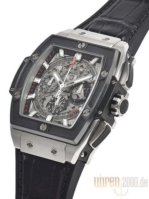 Gehäuse Titan poliert und satiniert, Gehäusedurchmesser 42 mm, Keramik Lünette satiniert, schwarzes Zifferblatt, schwarzes Kautschuk / Lederarmband mit Faltschließe, Automatikwerk, Chronograph, Manufakturkaliber HUB4700, Gangreserve für ca. 50 Stunden, Datumsanzeige, Saphirglas entspiegelt, Saphirglasboden verschraubt und graviert, Wasserdicht bis 10 bar.