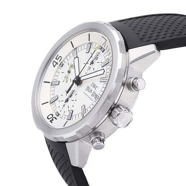 Gehäuse Edelstahl poliert und satiniert, Durchmesser 44 mm, Höhe 17 mm, Automatikwerk Kaliber IWC79320, Gangreserve ca. 44 Stunden, Anzahl Steine 25, Schwingungen 28.800 A/h, Datums- und Wochentagsanzeige, Saphirglas, silberfarbenes Zifferblatt, Leuchtelemente auf Zeigern, Kautschuk Armband mit Dornschließe, Wasserdicht bis zu 30 bar.