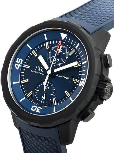 Gehäuse aus Edelstahl mit schwarzer Kautschukbeschichtung, Gehäusedurchmesser 45 mm, Gehäusehöhe 16,9 mm, blaues Kautschukarmband mit Dornschließe, Innendrehring in der Lünette, blaues Zifferblatt mit Leuchtindizes und Leuchtzeiger, Automatik, IWC Kaliber 89365, Gangreserve ca. 68 Stunden, Chronograph, Datum, Flybackfunktion, kleine Sekunde, verschraubte Krone, Saphirglas beidseitig entspiegelt, Gehäuseboden graviert, Wasserdicht bis zu 30 bar, limitiert auf 1000 Stück.