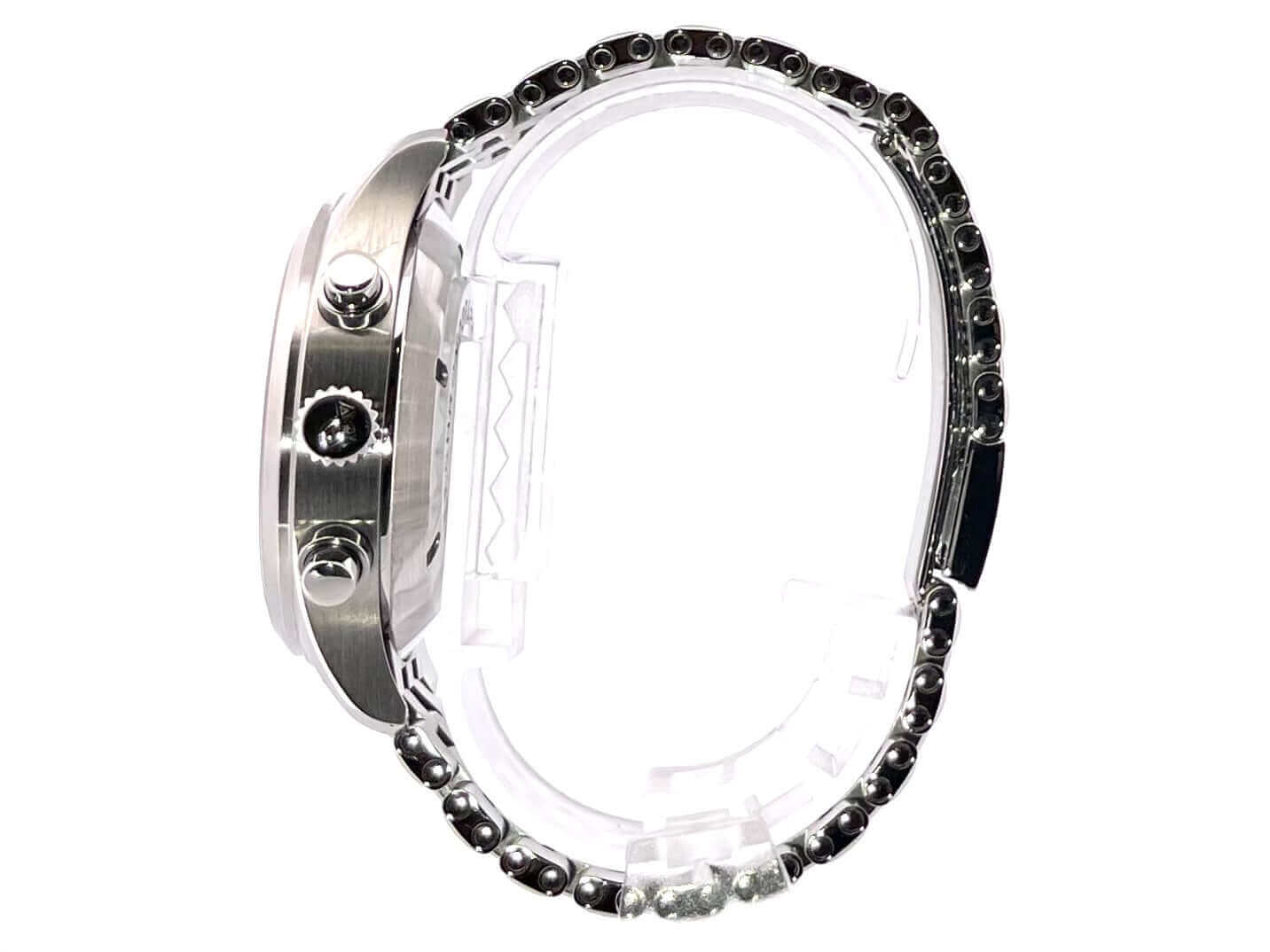 Gehäuse aus Edelstahl poliert und satiniert, Gehäusedurchmesser 39 mm, Edelstahlband mit Faltschließe, schwarzes Zifferblatt, Automatikwerk, Chronograph, Datumsanzeige, Wochentagsanzeige, Gangreserve 44 Stunden, Saphirglas, Wasserdicht bis zu 6 bar.