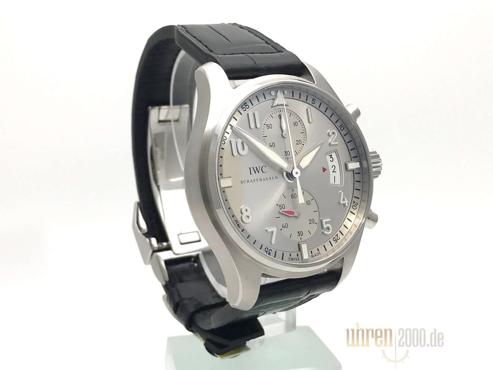 Gehäuse aus Edelstahl poliert und satiniert, Gehäusedurchmesser 43 mm, Gehäusehöhe 15,50 mm, schwarzes Krokodilleder Armband mit Faltschließe, silberfarbenes Zifferblatt mit Totalisatoren auf der 12 und 6 Uhr Position, Mechanisches Chronographen- Automatikwerk, Vollständige IWC Eigenfertigung, Kaliber 89365, Steine 35, Gangreserve 68 Stunden, Flybackfunktion, Datumsanzeige, verschraubte Krone, kleine Sekunde, Spezielle Bodengravur, Wasserdicht bis zu 6 bar, limitiert auf 500 Stück.