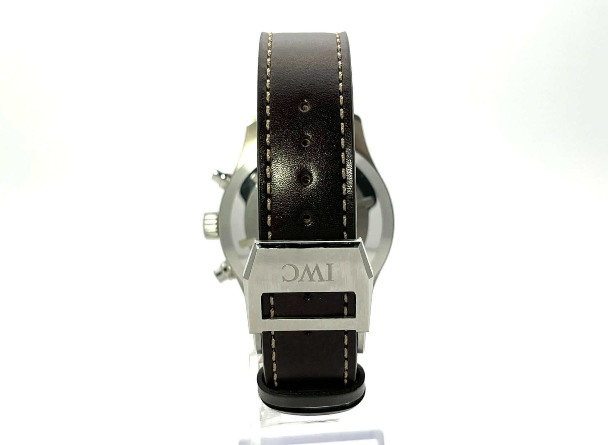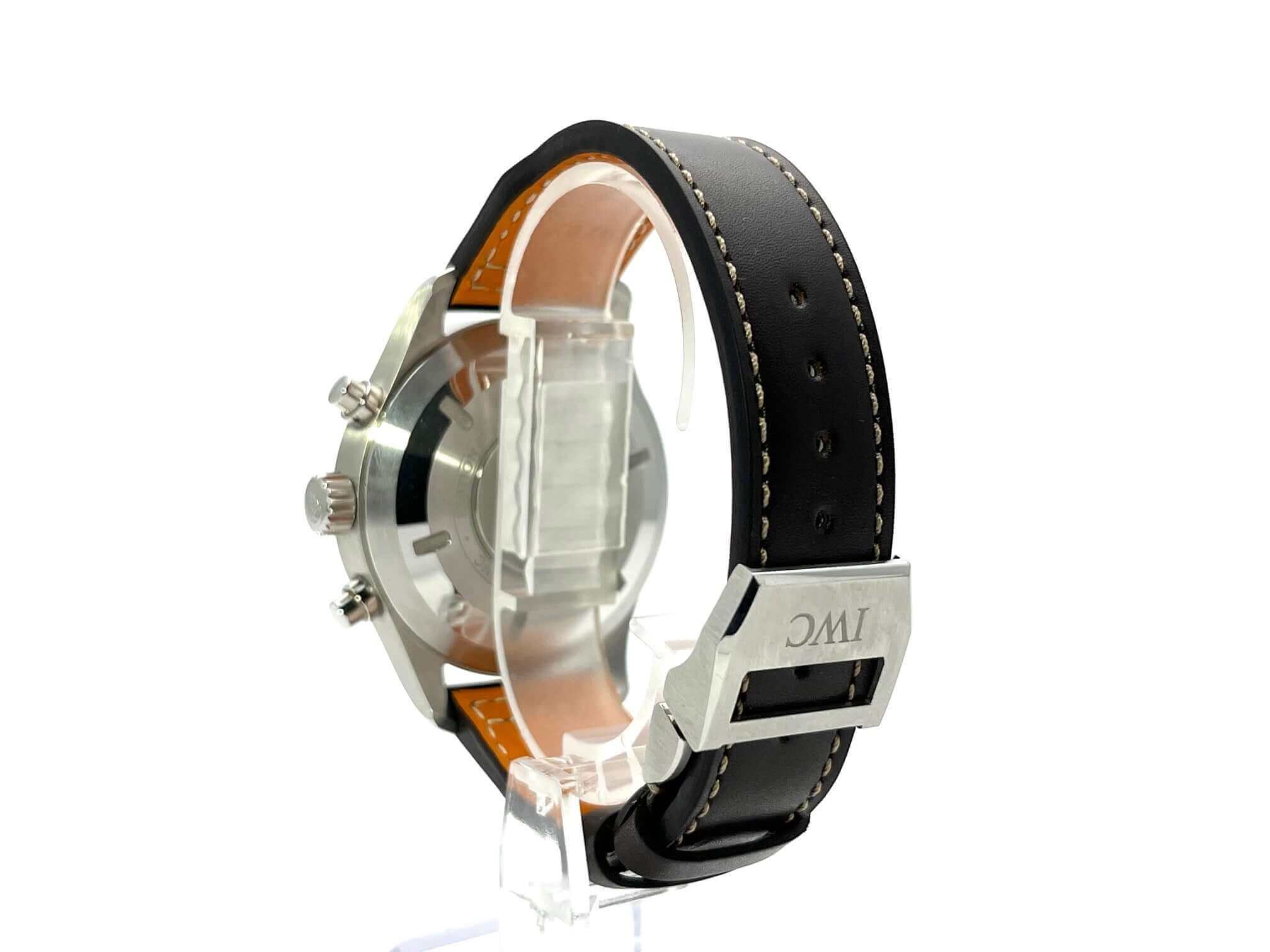 Gehäuse aus Edelstahl poliert und satiniert, Gehäusedurchmesser 43 mm, Gehäusehöhe 15 mm, braunes Lederband mit Faltschließe, blaues Zifferblatt, Automatikwerk, Chronograph, IWC Kaliber 79320, Datumsanzeige, Wochentagsanzeige, Gangreserve 44 Stunden, Saphirglas, Wasserdicht bis zu 6 bar.