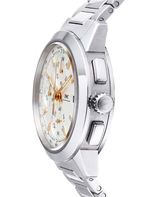 Gehäuse aus Edelstahl poliert und satiniert, Gehäusedurchmesser 42 mm, Lünette aus Edelstahl poliert, silberfarbenes Zifferblatt mit Leuchtindex und Leuchtzeiger, Edelstahlband mit Faltschließe, Mechanisches Chronographenwerk, Automatik, IWC Kaliber 69375, Gangreserve 46 Stunden, Datum, kleine Sekunde, Saphirglas entspiegelt, Wasserdicht bis zu 12 bar.
