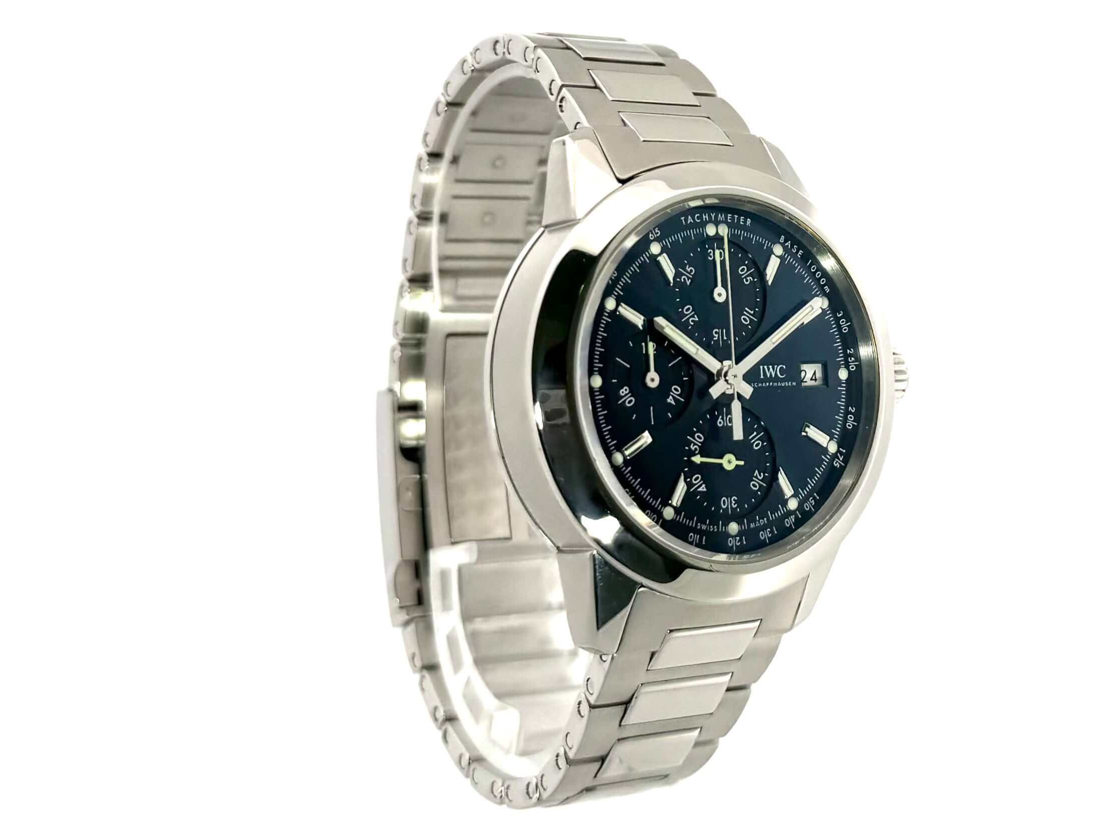 Gehäuse aus Edelstahl poliert und satiniert, Gehäusedurchmesser 42 mm, Lünette aus Edelstahl poliert, blaues Zifferblatt mit Leuchtindizes und Leuchtzeiger, Edelstahlband mit Faltschließe, Mechanisches Chronographenwerk, Automatik, IWC Kaliber 69375, Gangreserve 46 Stunden, Datum, kleine Sekunde, Saphirglas entspiegelt, Wasserdicht bis zu 12 bar.