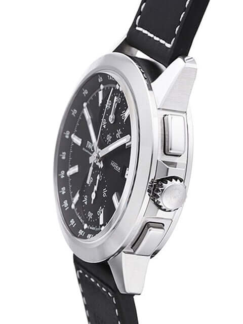 Gehäuse aus Titan poliert und satiniert, Gehäusedurchmesser 44,3 mm, Lünette aus Titan satiniert, schwarzes Lederband mit Dornschließe, schwarzes Zifferblatt mit Leuchtindex und Leuchtzeiger, Mechanisches Chronographenwerk, Automatik, IWC Kaliber 89361, Gangreserve 68 Stunden, Datum, kleine Sekunde, Saphirglas entspiegelt, Wasserdicht bis zu 12 bar, limitiert auf 500 Stück.