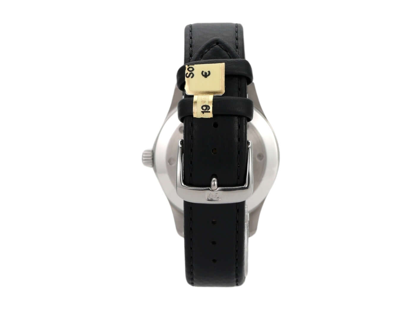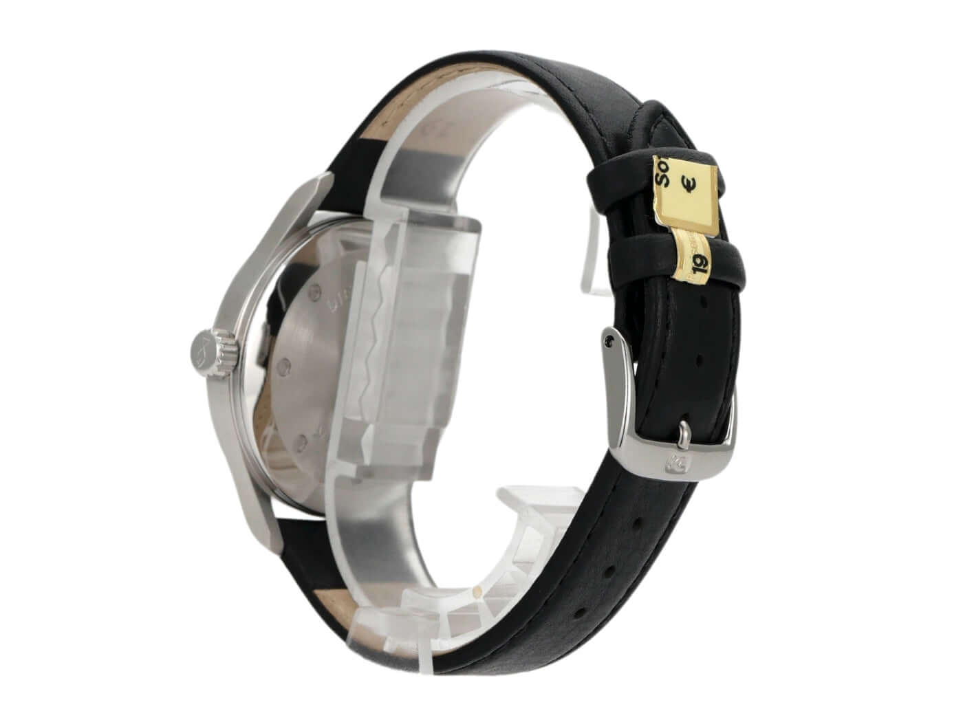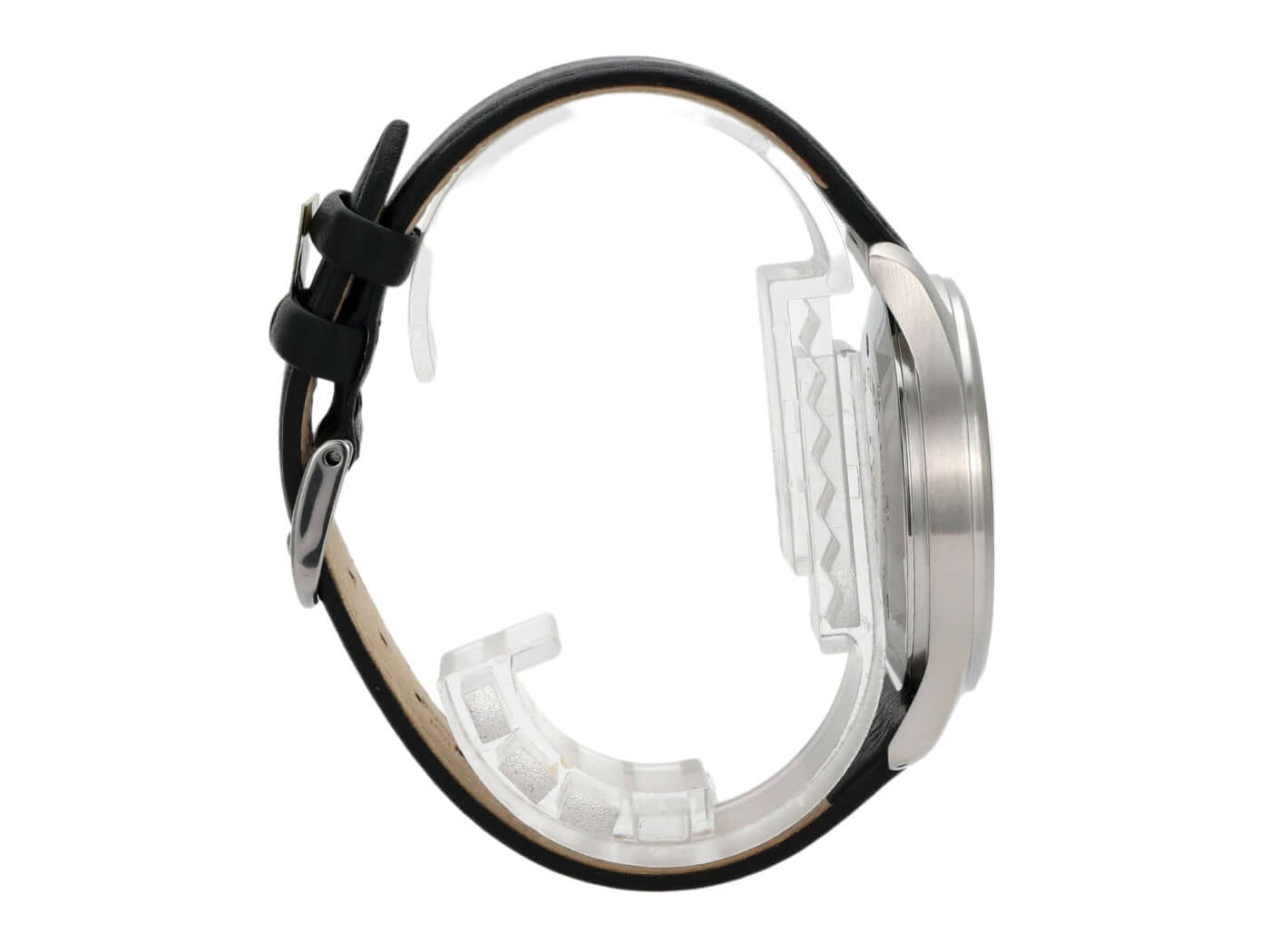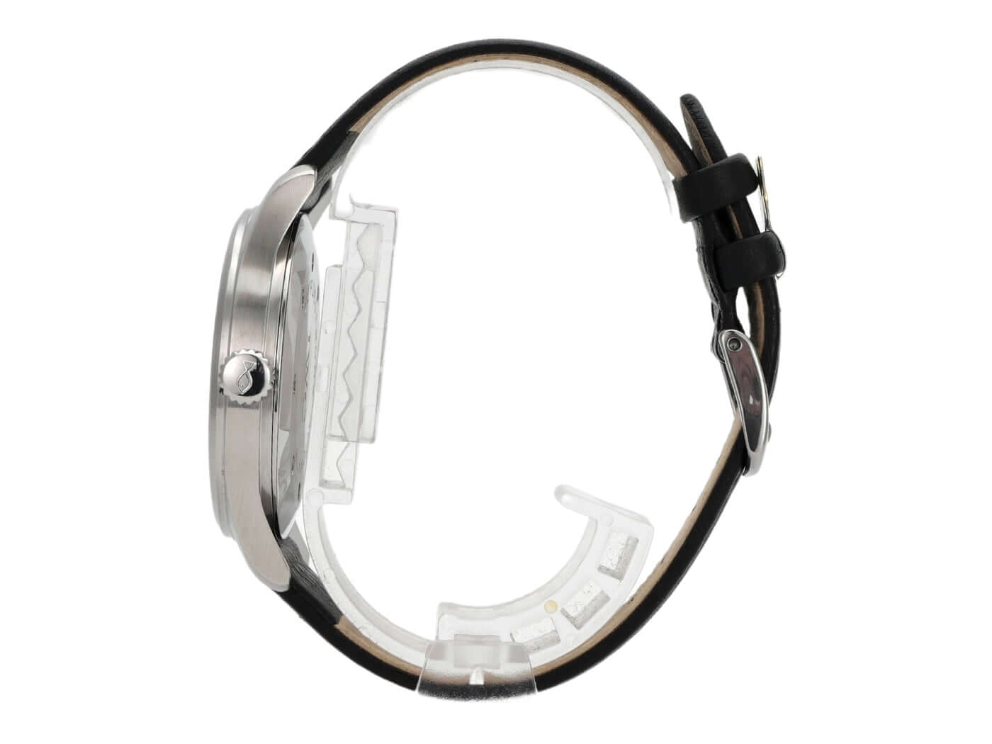 Gehäuse aus Edelstahl satiniert, Gehäusedurchmesser 38 mm, Gehäusehöhe 10,15 mm, schwarzes Aftermarket Lederarmband mit Dornschließe, Automatikwerk, Schwingung 28.800 A/h, Gangreserve für ca. 38 Stunden, Datum und Zentralsekunde mit Stoppvorrichtung, kratzfestes Saphirglas, verschraubter Boden aus Edelstahl, wasserdicht bis zu 6 bar.