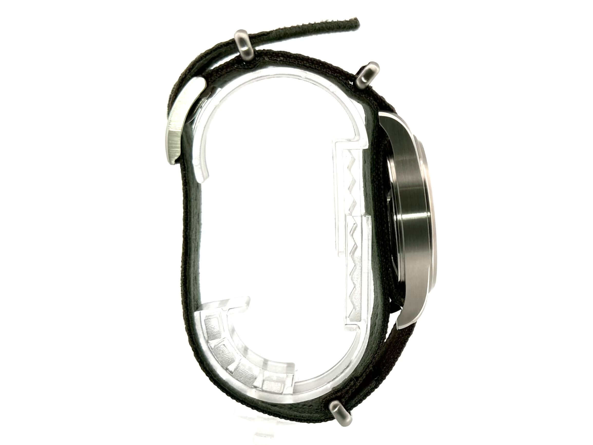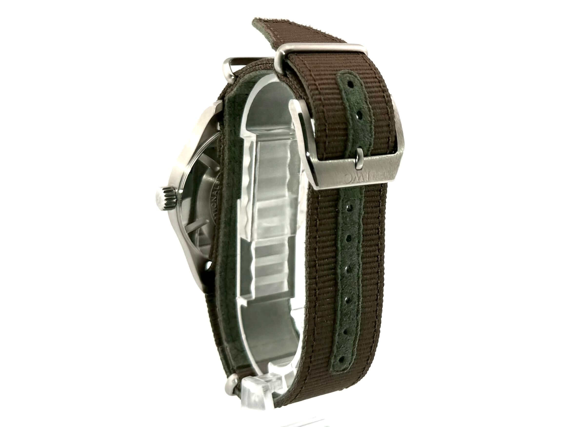 Gehäuse aus Edelstahl satiniert, Gehäusedurchmesser 39 mm, Gehäusehöhe 10,8 mm, grünes Textilarmband mit Dornschließe, schwarzes Zifferblatt, Automatikwerk, Kaliber IWC 32111 mit 21 Steine, Schwingung 28.800 A/h, Gangreserve für ca 72 Stunden, Datum, Zentralsekunde mit Stoppvorrichtung, kratzfestes Saphirglas, verschraubter Boden aus Edelstahl, Wasserdicht bis zu 6 bar.