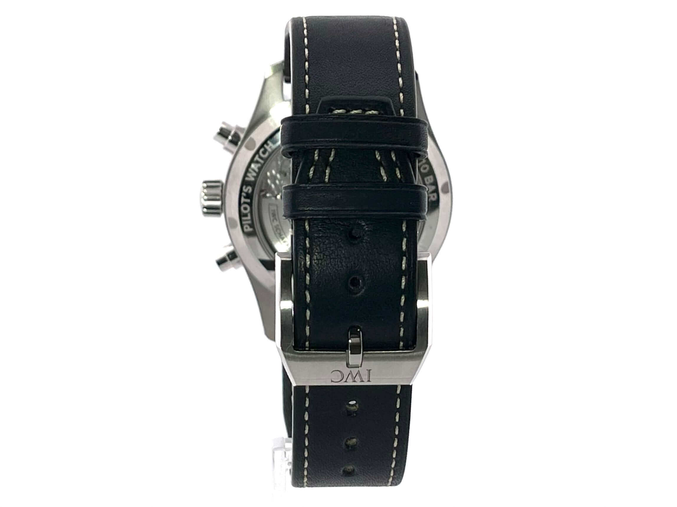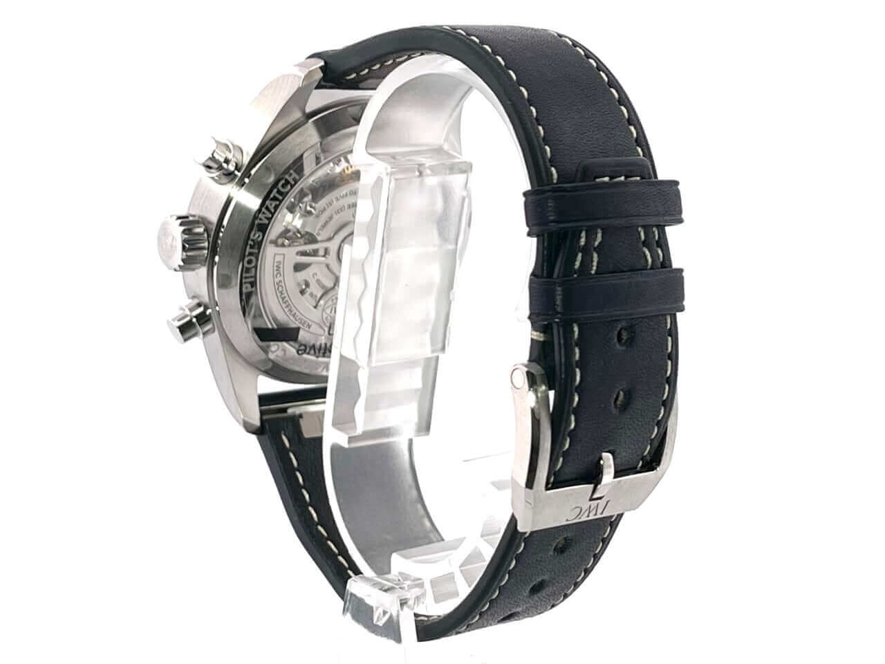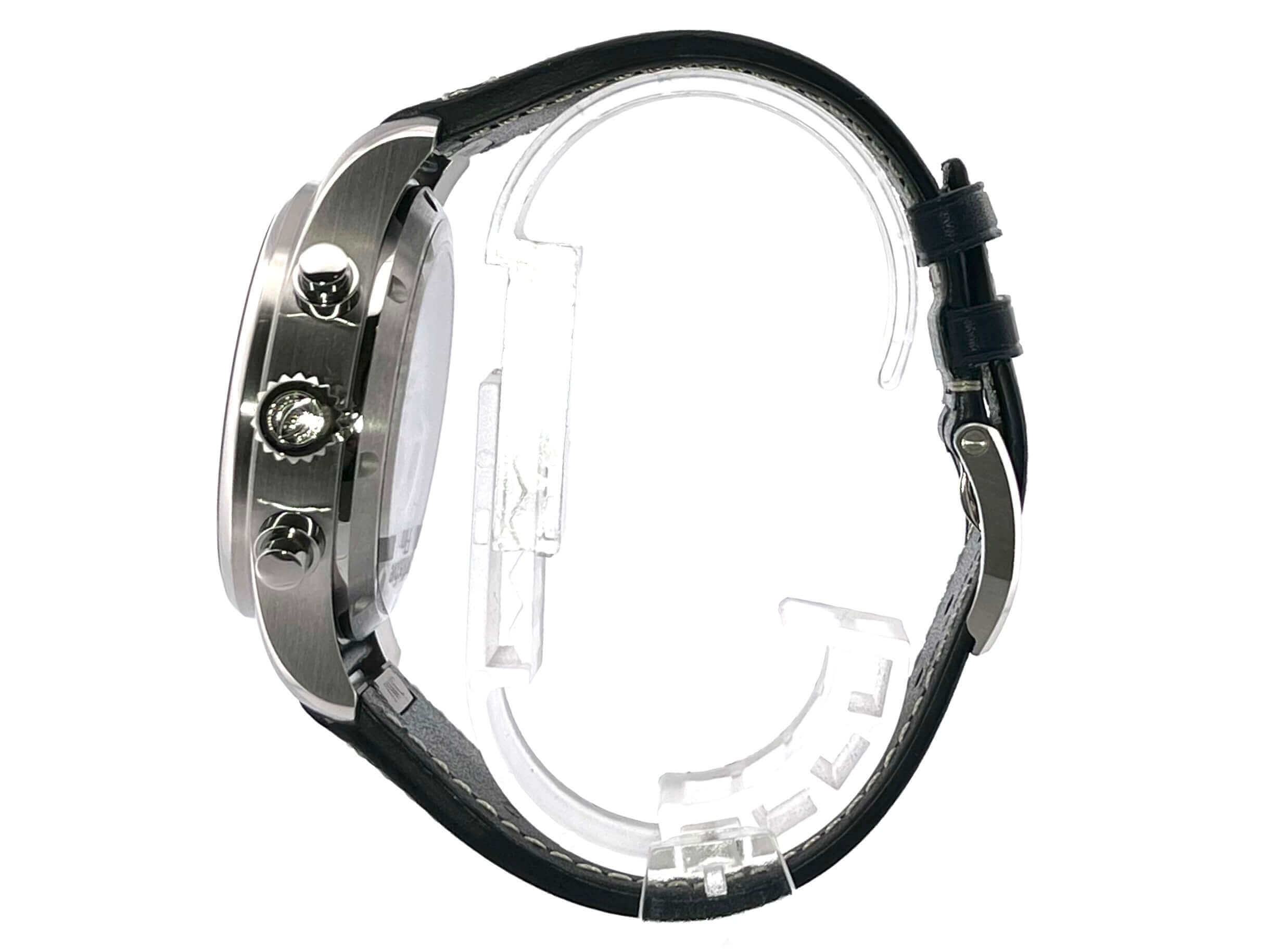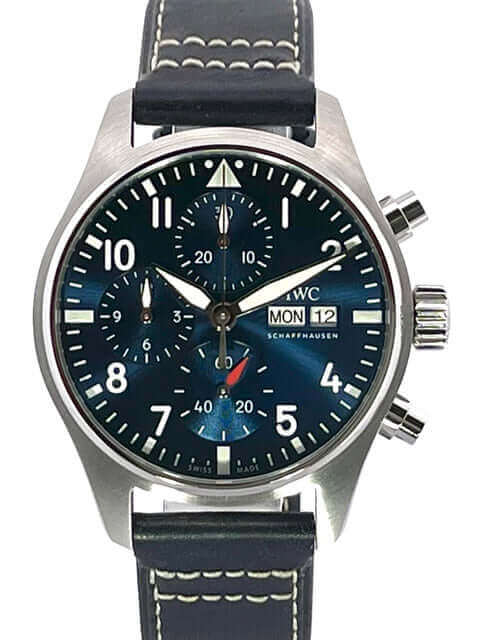 Gehäuse aus Edelstahl poliert und satiniert, Gehäusedurchmesser 41 mm, Gehäusehöhe 14,5 mm, blaues Lederband mit Dornschließe, IWC-Armband-Schnellwechselsystem, blaues Zifferblatt, Automatikwerk, IWC Kaliber 69385, Gangreserve 46 Stunden, Chronograph, Datumsanzeige, Wochentagsanzeige, kleine Sekunde, Saphirglas, Sichtboden, Wasserdicht bis zu 10 bar.