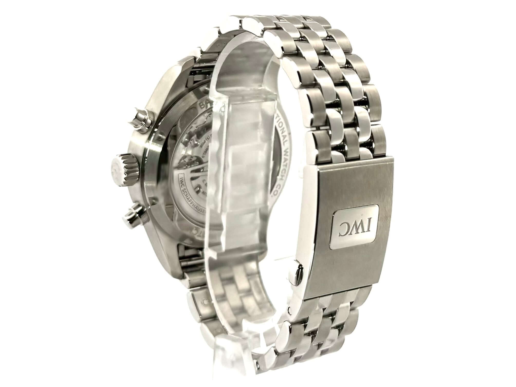Gehäuse aus Edelstahl poliert und satiniert, Gehäusedurchmesser 41 mm, Gehäusehöhe 14,5 mm, Edelstahlband mit Faltschließe, IWC-Armband-Schnellwechselsystem, schwarzes Zifferblatt, Automatikwerk, IWC Kaliber 69385, Gangreserve 46 Stunden, Chronograph, Datumsanzeige, Wochentagsanzeige, kleine Sekunde, Saphirglas, Sichtboden, Wasserdicht bis zu 10 bar.