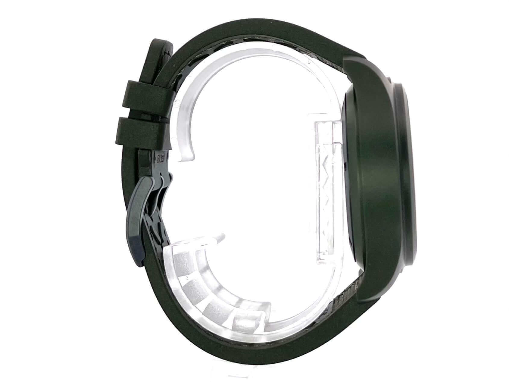 Gehäuse aus grüner Keramik, Gehäusedurchmesser 44,5 mm, Gehäusehöhe 15,7 mm, Keramik Lünette, grünes Kautschukarmband mit Faltschließe, grünes Zifferblatt mit Leuchtmarkierungen, Leuchtzeiger, Automatikwerk, Kaliber IW69380 mit 33 Steine, Schwingung 28.800 A/h., Gangreserve für 46 Stunden, Chronograph, Datumsanzeige, Wochentag, kleine Sekunde mit Stoppvorrichtung, kratzfestes Saphirglas, Gehäuseboden Titan verschraubt und graviert, Saphirglas beidseitig entspiegelt, wasserdicht bis zu 6 bar.