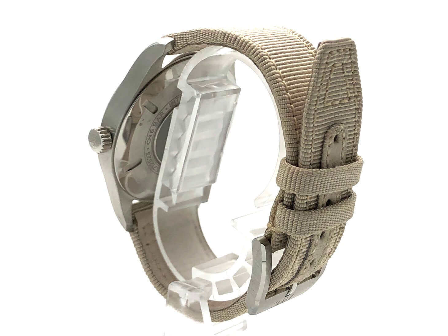 Gehäuse aus Edelstahl satiniert, Gehäusedurchmesser 40 mm, Gehäusehöhe 11 mm, Beigefarbenes Textilarmband mit Dornschließe, silberfarbenes Zifferblatt, Automatikwerk, Kaliber IWC 35111 mit 25 Steine, Schwingung 28.800 A/h, Gangreserve für ca 42 Stunden, Datum, Zentralsekunde mit Stoppvorrichtung, kratzfestes Saphirglas, verschraubter Edelstahlboden, Wasserdicht bis zu 6 bar.