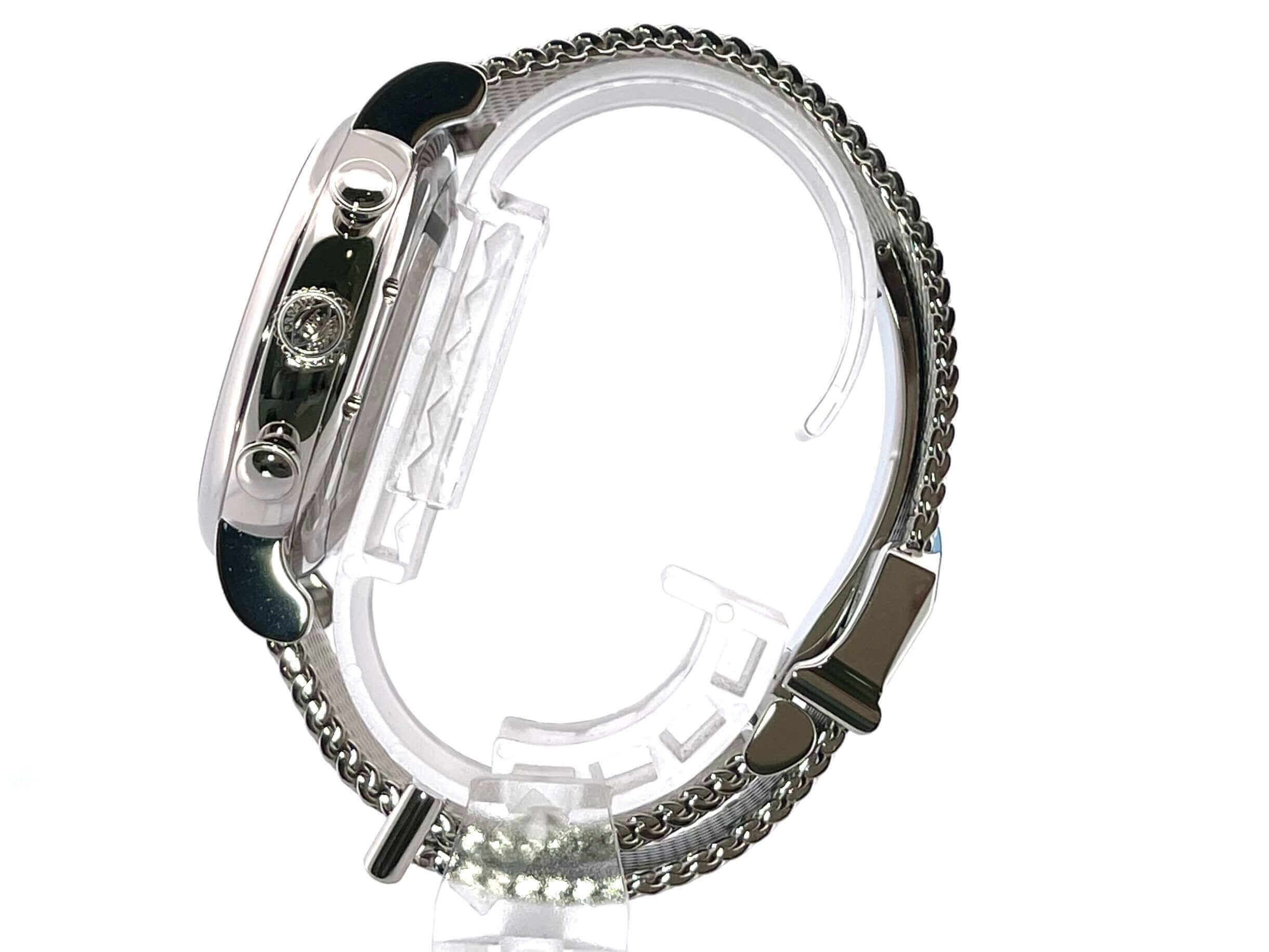Gehäuse aus Edelstahl poliert, Gehäusedurchmesser 42 mm, Gehäusehöhe 13,6 mm, Millanese-Armband aus Edelstahl satiniert mit Faltschließe, silberfarbenes Zifferblatt mit aufgesetzten Indizes, Automatik, Kaliber 75320 mit 25 Steinen, 44 Stunden Gangreserve, Chronograph, Datumsanzeige und Wochentags Anzeige in Englisch, Saphirglas, Edelstahlboden verschraubt und graviert, Wasserdicht bis zu 3 bar.