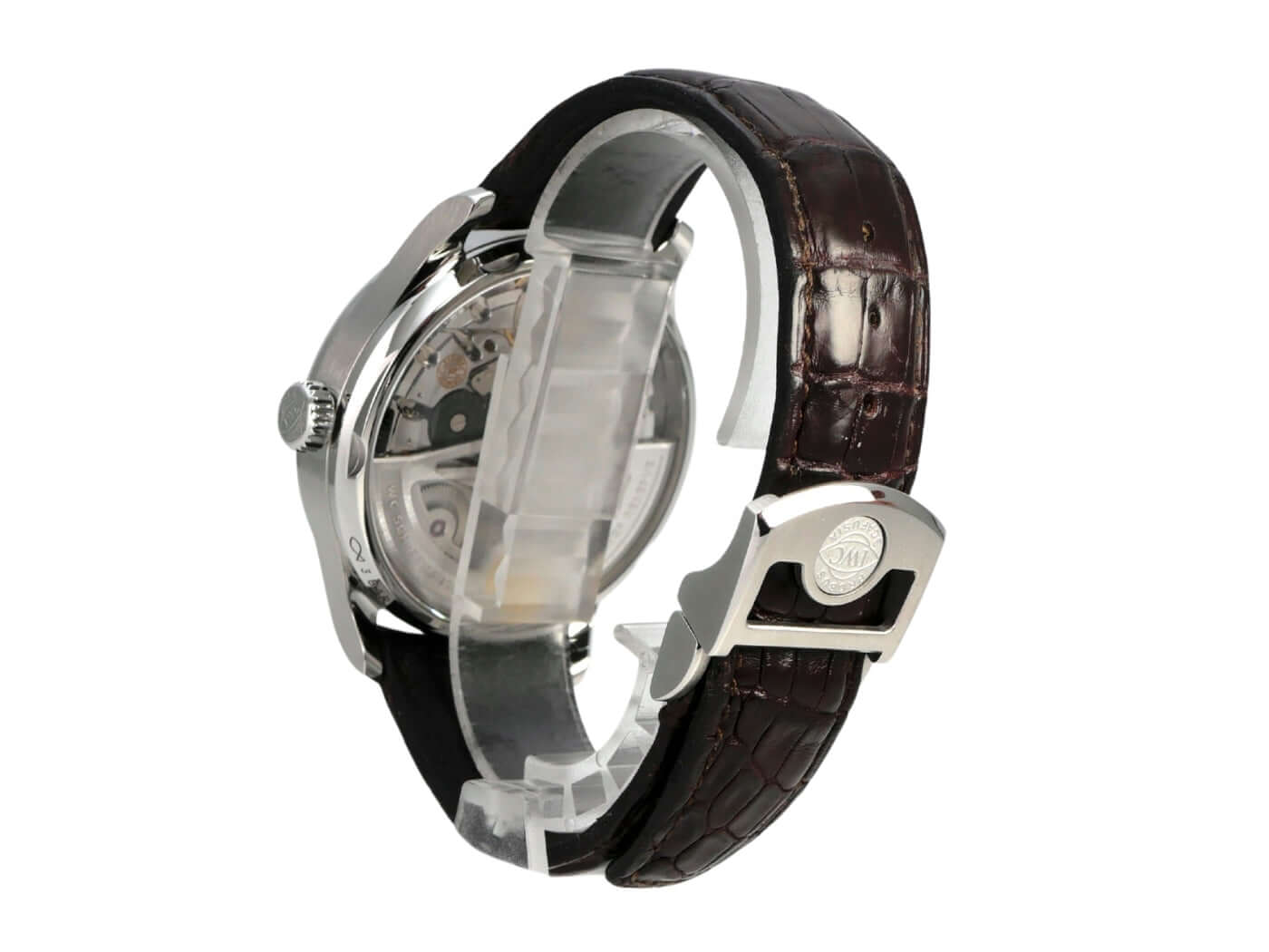 Gehäuse aus Edelstahl poliert und satiniert, Gehäusedurchmesser 42,3 mm, Gehäusehöhe 14,5 mm, braunes Lederarmband mit Faltschließe, silberfarbenes Zifferblatt, IWC Manufakturkaliber 52010, Automatischer Pellaton-Aufzug, Breguet Spirale, Gangreserve nach Vollaufzug 168 Stunden, Schwungmasse mit Medaillon aus 18 Karat Gold, Gangreserveanzeige, Datum, Saphirglas entspiegelt, Sichtboden mit Saphirglas, wasserdicht bis 3 bar