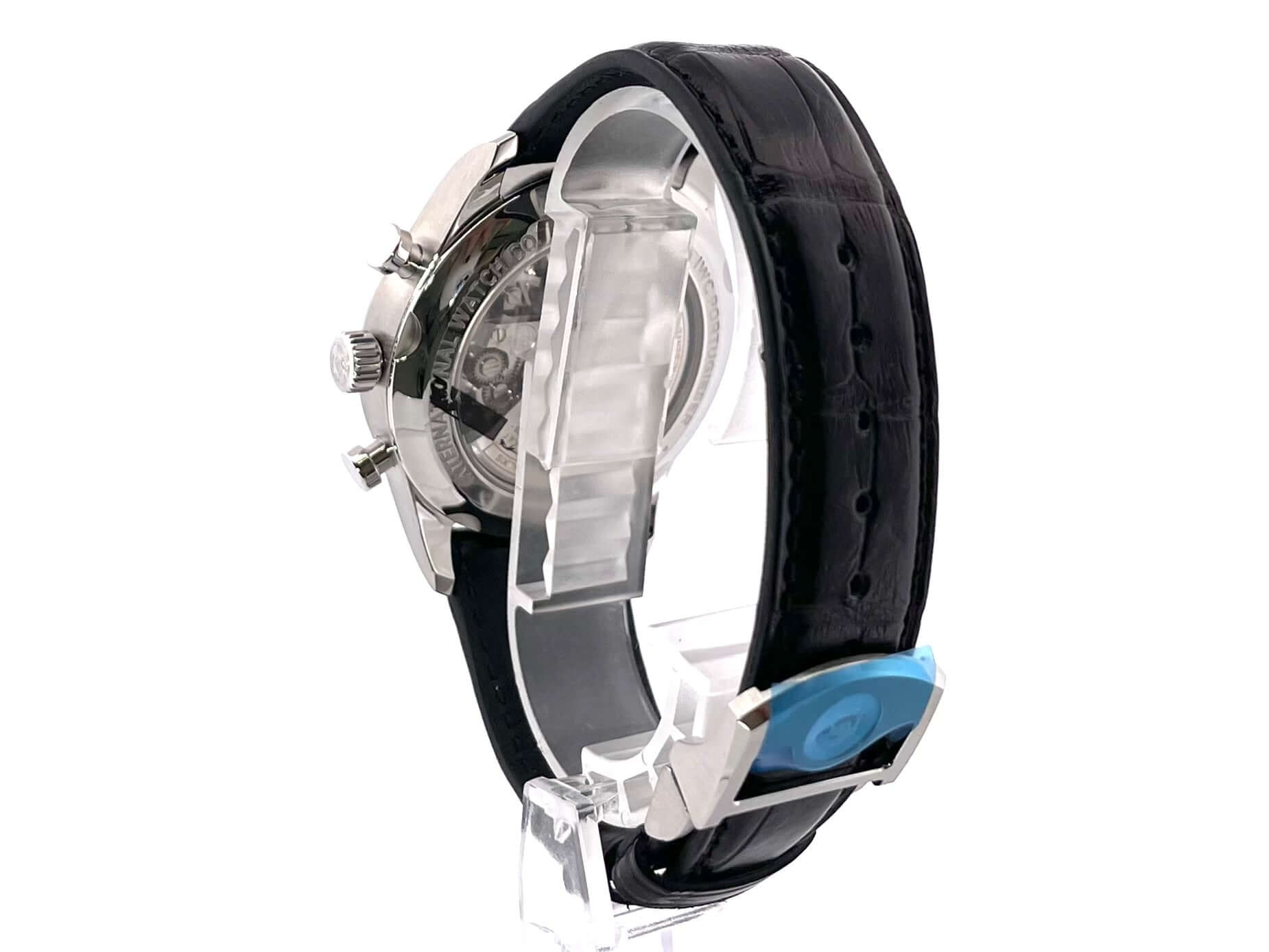Gehäuse Edelstahl poliert und satiniert, Gehäusedurchmesser 42 mm, Gehäusehöhe 14,5 mm, Lünette Edelstahl poliert und satiniert, blaues Zifferblatt mit arabischen Ziffern, schwarzes Alligatorlederarmband mit Faltschließe, Automatikwerk, Kaliber IWC 89361 mit 38 Steine, Schwingung 28.800 A/h, Gangreserve für ca. 68 Stunden, Datumsanzeige bei 3 Uhr, Chronograph, zwei Totalisatoren auf 12 und 6 Uhr, kleine Sekunde, Krone verschraubt, kratzfestes Saphirglas, Wasserdicht bis zu 3 bar.