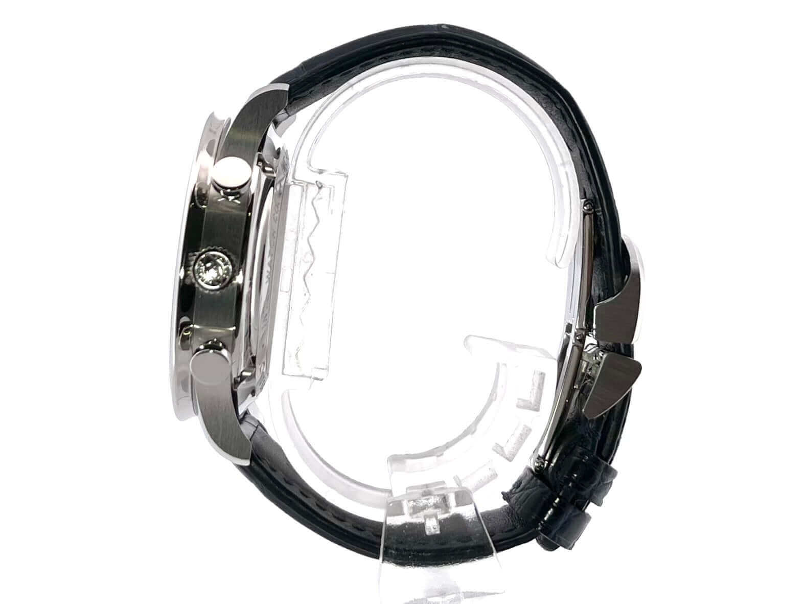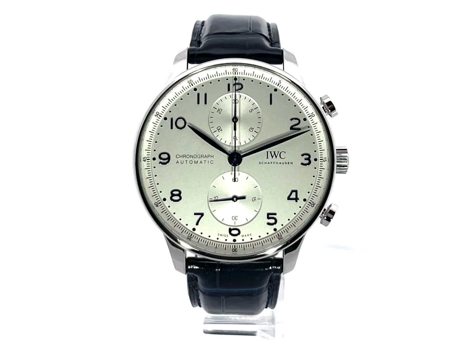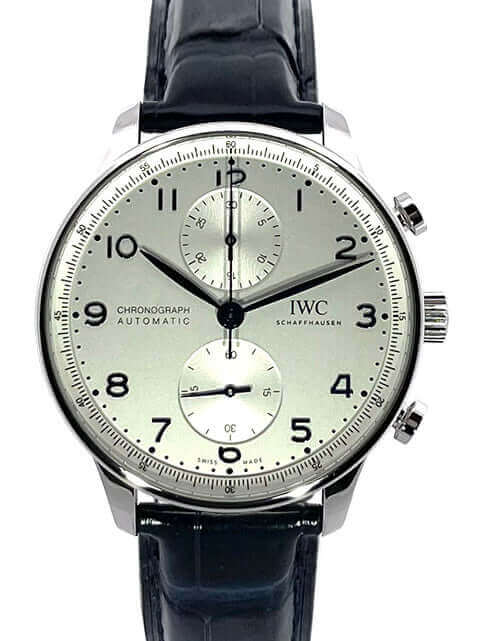 Gehäuse aus Edelstahl poliert und satiniert, Gehäusedurchmesser 41 mm, Gehäusehöhe 13 mm, blaues Alligatorlederband mit Faltschließe, silbernes Zifferblatt mit aufgesetzten blau eloxierten arabischen Ziffern, blau eloxierte Zeiger, Automatikwerk, Kaliber IWC 69355, 27 Steine, 28.800 A/h, Gangreserve ca 46 Stunden, Chronograph, kleine Sekunde, kratzfestes Saphirglas, Edelstahlboden mit Sichtfenster, Wasserdicht bis zu 3 bar.
