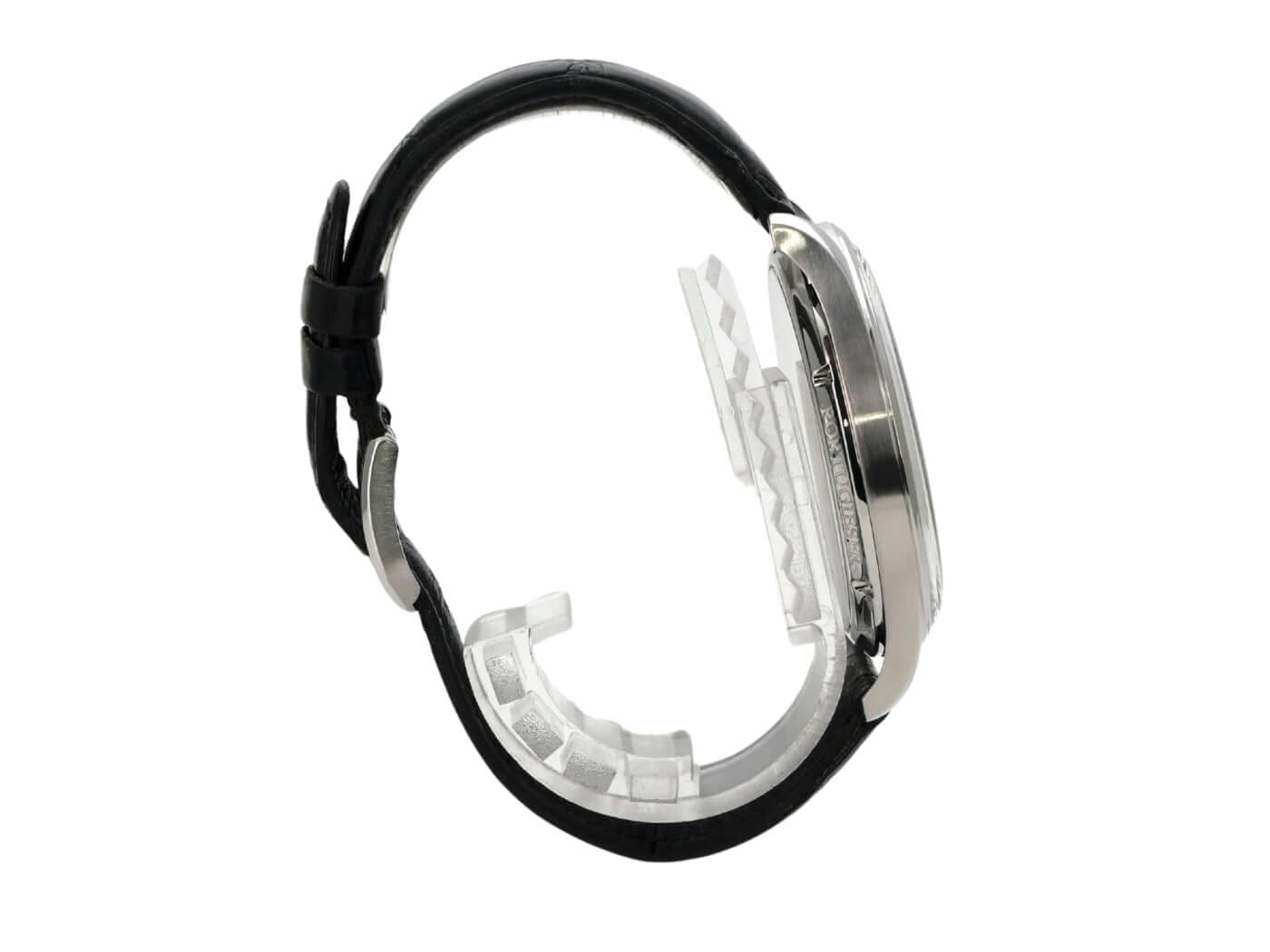 Gehäuse aus Edelstahl poliert, Gehäusedurchmesser 44 mm, Höhe 10 mm, Edelstahl Lünette poliert, schwarzes Alligator Lederband mit Dornschließe, schwarzes Zifferblatt, Handaufzugswerk Kaliber IWC 98295, Saphirglas, kleine Sekunde, Sichtboden mit Saphirglas, wasserdicht bis zu 3 bar.