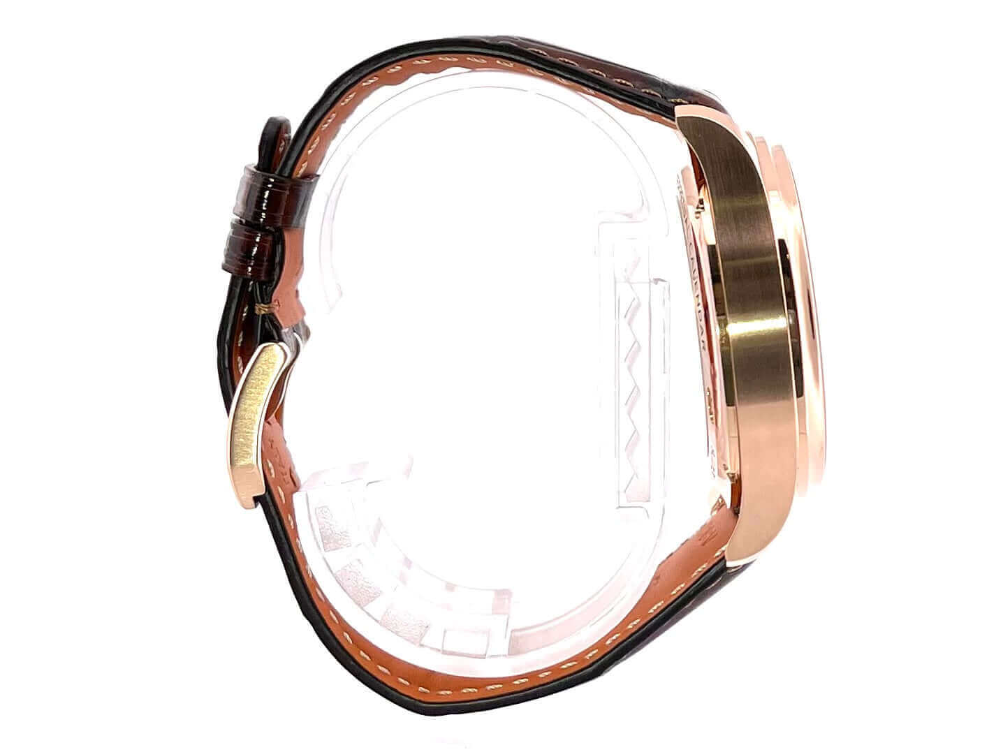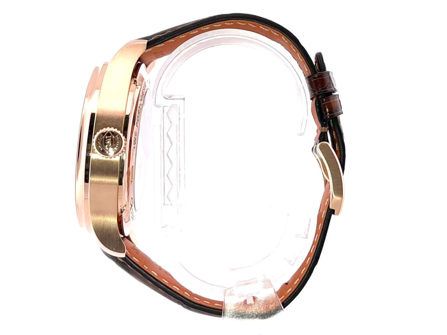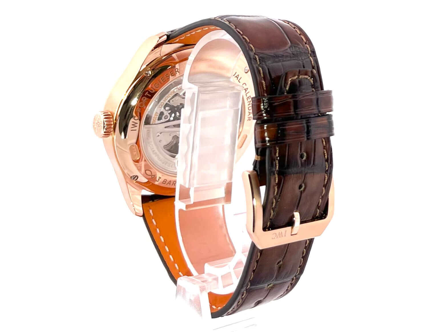 Gehäuse aus 18 Kt. Rotgold, Gehäusedurchmesser 42,4 mm, Gehäusehöhe 13,8 mm, 18 Kt. Rotgold Lünette poliert, braunes Lederband mit Dornschließe, silberfarbenes Zifferblatt mit arabischen Ziffern, Automatik, Kaliber IWC 82650, Schwingung 28.800 A/h, Gangreserve für ca. 60 Stunden, Ewiger Kalender mit Anzeige von Datum, Wochentag, Monat, Mondphase, kleine Sekunde mit Stoppvorrichtung, kratzfestes Saphirglas, Gehäuseboden verschraubt und graviert mit Sichtfenster, Wasserdicht bis zu 3 bar.