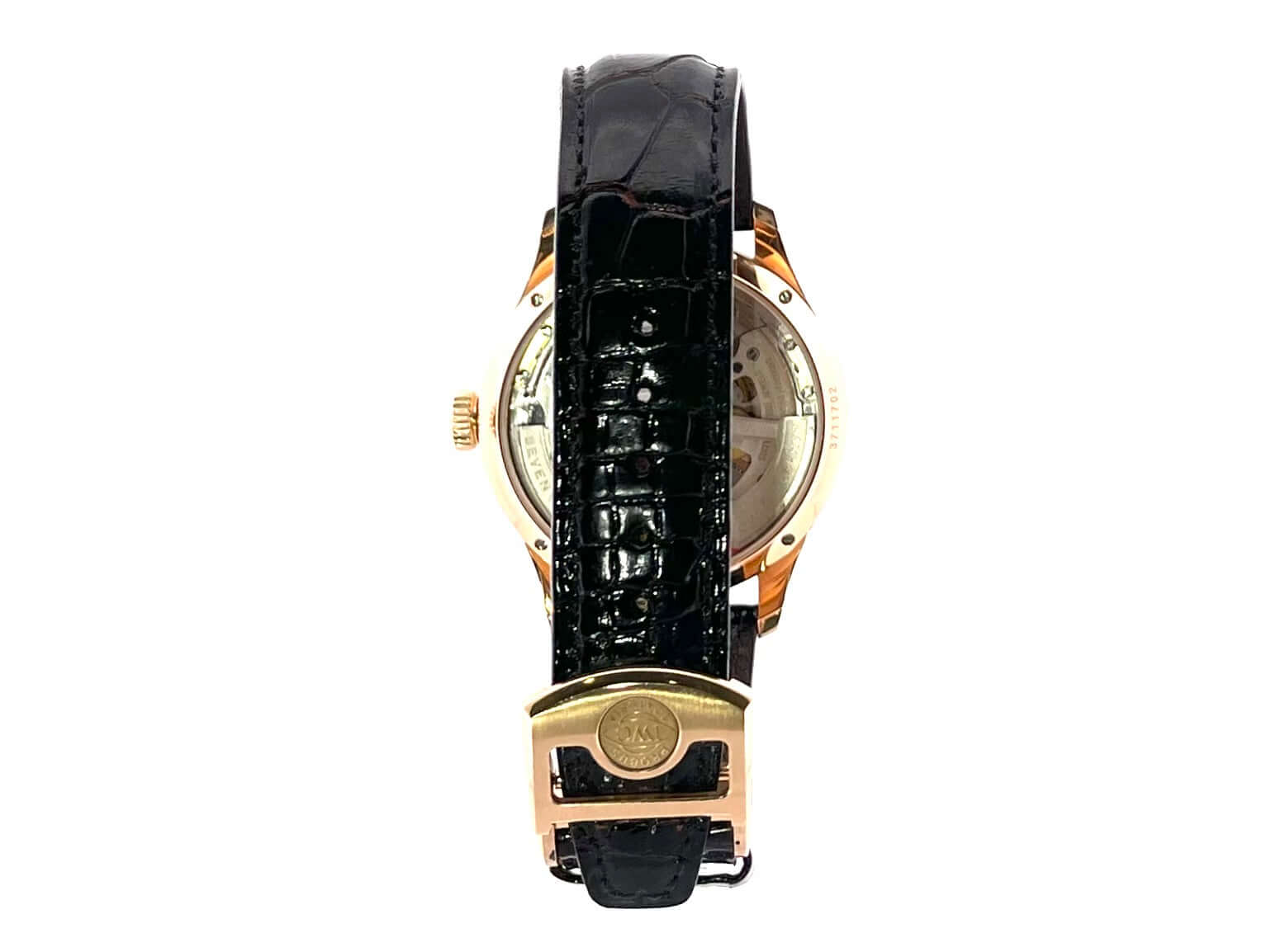 Gehäuse aus 18 kt Rotgold, Gehäusedurchmesser 44,2 mm, Gehäusehöhe 14,9 mm, 18 kt Rotgold Lünette poliert, schwarzes Krokodilleder mit 18 kt Rotgold Faltschließe, schwarzes Zifferblatt mit arabischen Ziffern, Automatik, Kaliber IWC 51614, Schwingung 28.800 A/h, Gangreserve für ca. 168 Stunden, Ewiger Kalender mit Anzeige von Datum, Wochentag, Monat, Jahr, Mondphase, Gangreserveanzeige, kleine Sekunde mit Stoppvorrichtung, kratzfestes Saphirglas, Gehäuseboden mit Sichtfenster, wasserdicht bis zu 3 bar.