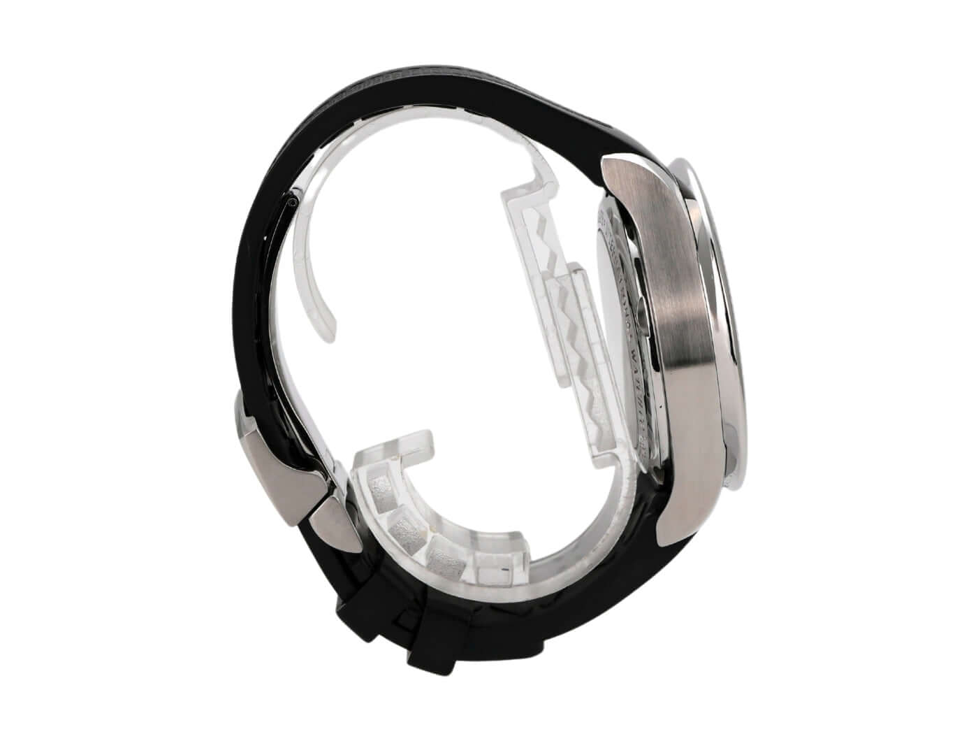 Gehäuse aus Edelstahl poliert, Durchmesser 45,40 mm, Höhe 14,50 mm, Edelstahl Lünette poliert, Schwarzes Kautschukband mit Faltschließe, Zifferblatt schwarz mit zwei runden Totalisatoren auf der 6 und 12-Uhr-Position, roter Stopp-Zeiger mittig angeordnet, Automatikwerk Kaliber IWC 89361, Gangreserve ca. 68 Stunden nach Vollaufzug, kratzfestes Saphirglas, Datumsanzeige, wasserdicht bis zu 6 bar.
