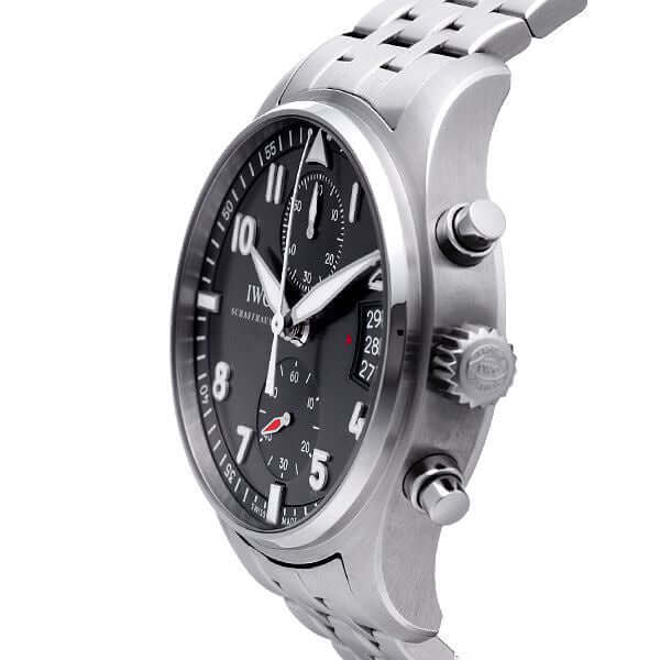 Gehäuse Edelstahl poliert und satiniert, Durchmesser 43 mm, Höhe 15,50 mm, Edelstahl Armband mit Faltschließe, graues Zifferblatt mit Totalisatoren auf der 12 und 6 Uhr Position und Sonnenschliff, Mechanisches Chronographen- Automatikwerk, Vollständige IWC Eigenfertigung, Kaliber IW 89365, Steine 35, Gangreserve 68 Stunden, Datumsanzeige auf 2 Uhr und 4 Uhr, verschraubte Krone, Flybackfunktion, kleine Sekunde, Spezielle Bodengravur, Wasserdicht bis zu 6 bar.