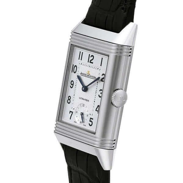 Gehäuse aus Edelstahl poliert, Gehäuse 46.8 x 27.4 mm, Gehäusehöhe 9,1 mm, polierte Edelstahl Lünette, schwarzes Alligatorleder Armband mit Doppelfaltschließe, silberfarbenes Zifferblatt, Automatik Uhrwerk, Kaliber Jaeger-LeCoultre 967B, 28 Steine, 28.800 A/h, Gangreserve ca. 42 Stunden, kleine Sekunde, Tag/Nacht-Anzeige, Saphirglas, Wasserdicht bis zu 3 bar.
