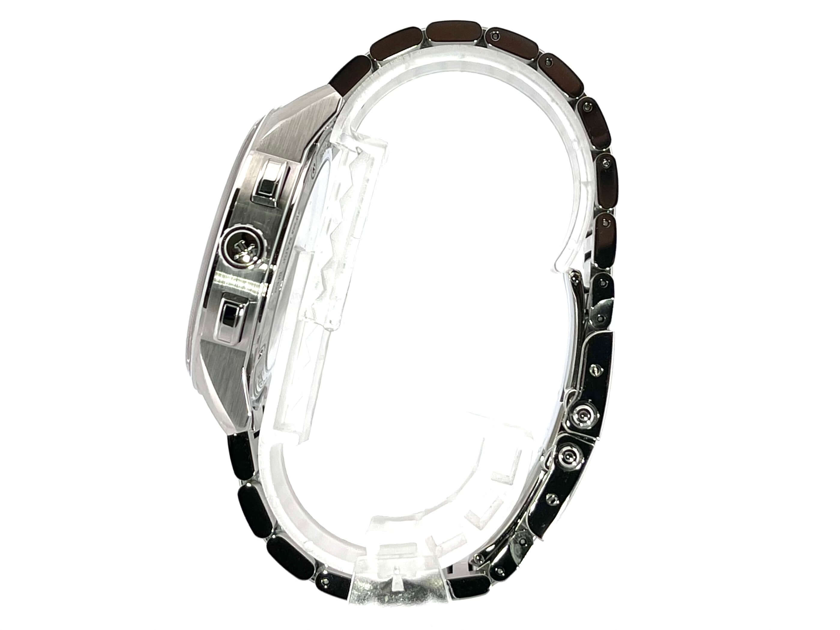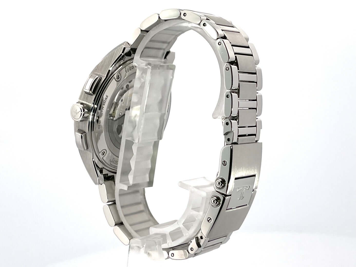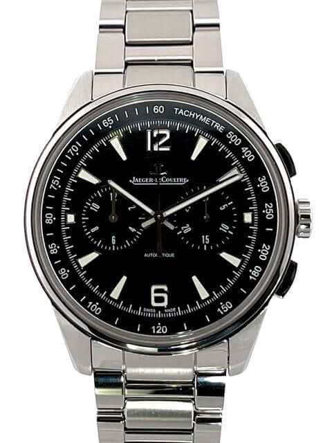 Gehäuse aus Edelstahl poliert, Gehäusedurchmesser 42 mm, Gehäusehöhe 11,9 mm, polierte Edelstahl Lünette, Edelstahlband mit Doppelfaltschließe, schwarzes Zifferblatt, Automatik Uhrwerk, Chronograph, Kaliber Jaeger-LeCoultre 751H, 37 Steine, 28.800 A/h, Gangreserve ca. 65 Stunden, kleine Sekunde, Saphirglas, Edelstahlboden mit Sichtfenster, Wasserdicht bis zu 10 bar.