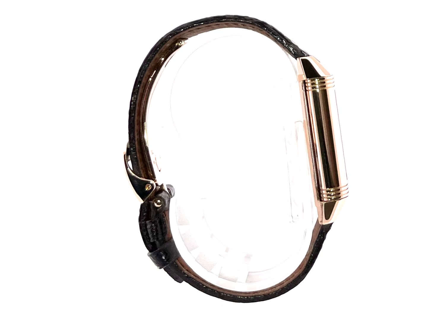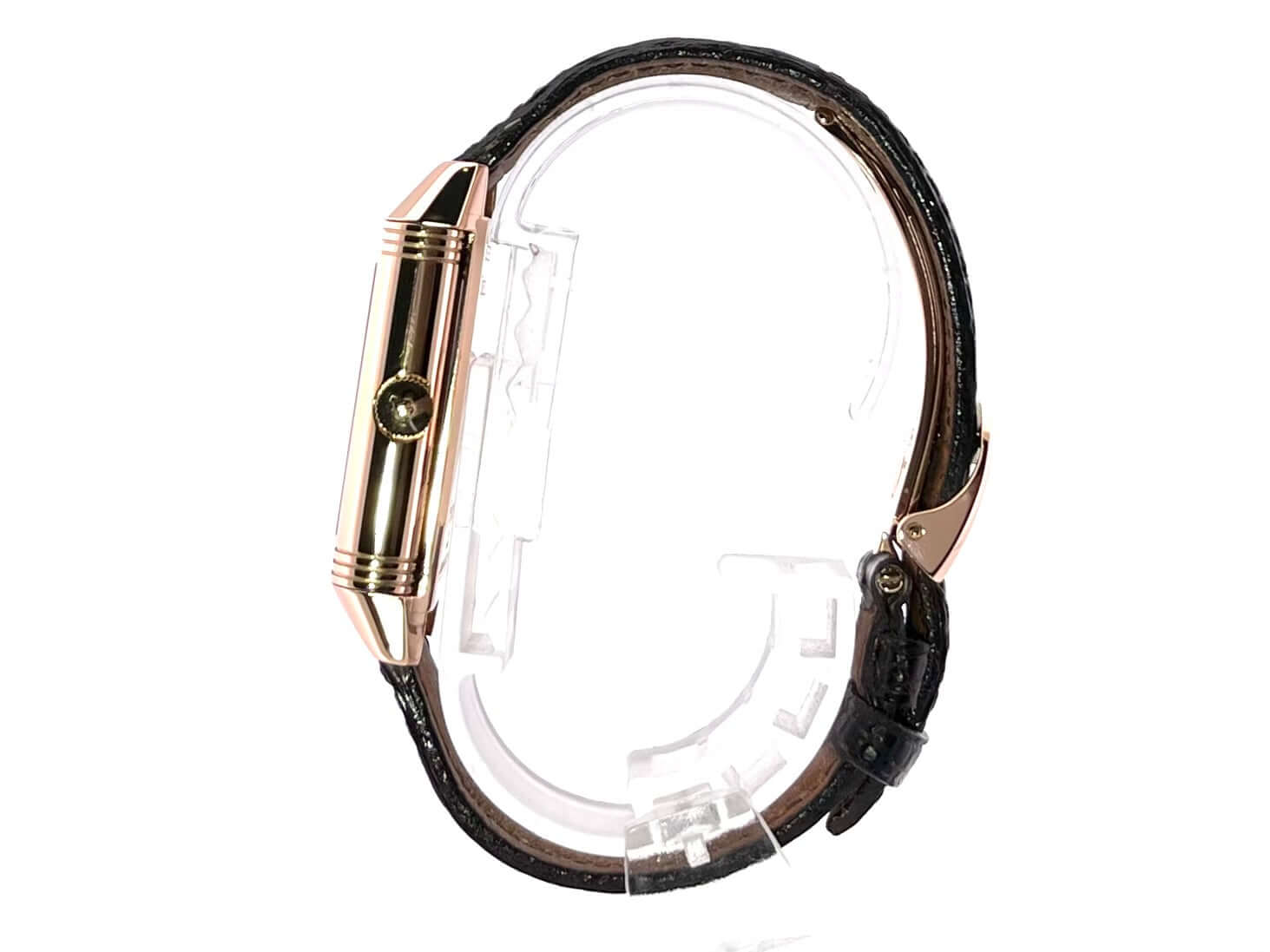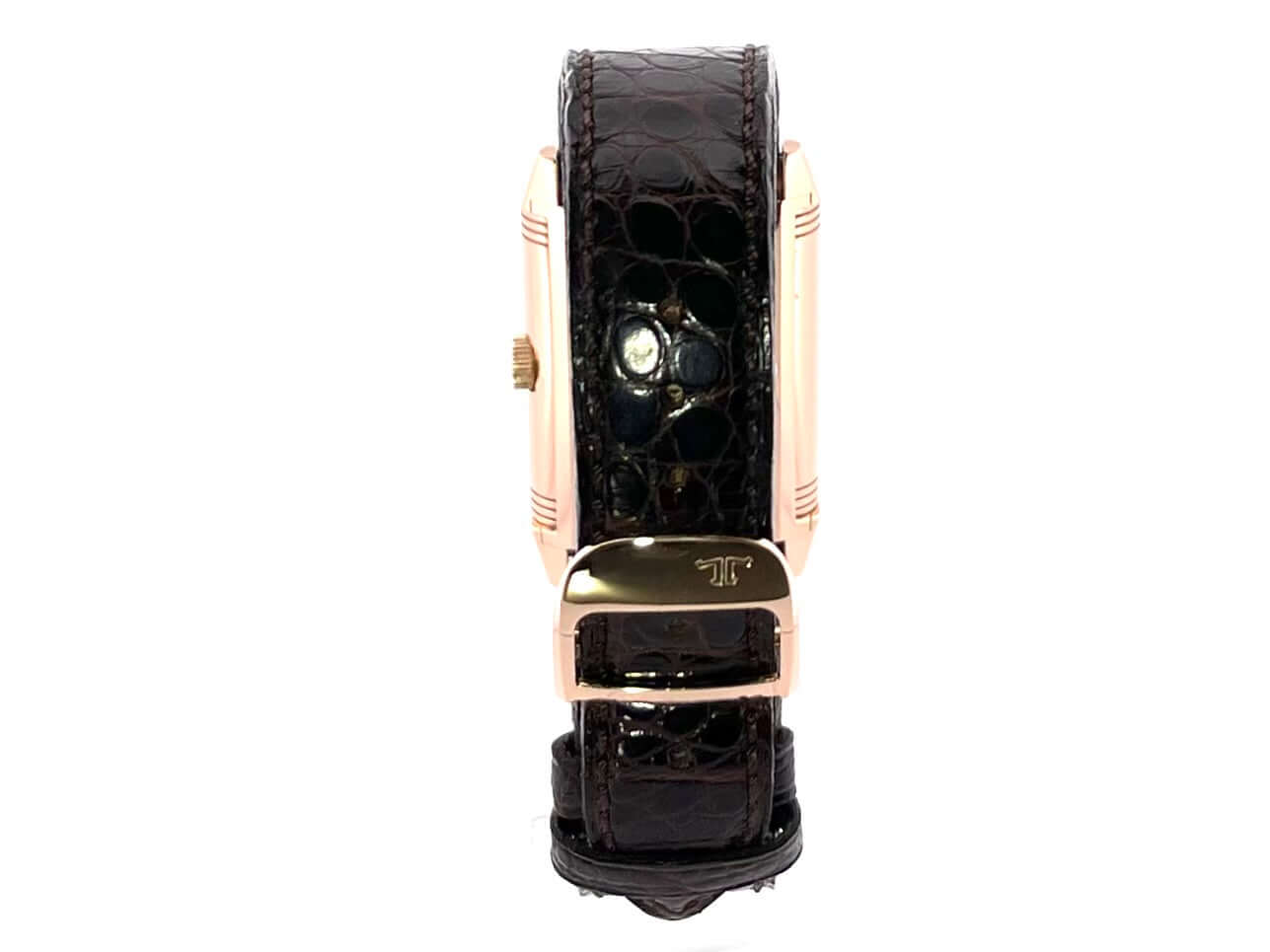 Gehäuse aus 18 kt Rotgold poliert, Gehäuse 42 x 26 mm, polierte 18 kt Rotgold Lünette, braunes Alligatorleder Armband mit 18 kt Rotgold Doppelfaltschließe, silberfarbenes Zifferblatt, Handaufzug Uhrwerk, Kaliber Jaeger-LeCoultre 828, 27 Steine, 21.600 A/h, Gangreserve ca. 45 Stunden, Tourbillon, Gangreserveanzeige, kleine Sekunde, Saphirglas, wasserdicht bis zu 3 bar, limitiert auf 500 Stück.