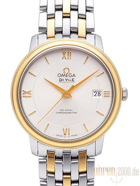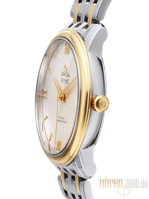 Gehäuse aus Edelstahl und Gelbgold poliert, Gehäusedurchmesser 36,8 mm, polierte Lünette aus Gelbgold, poliertes Edelstahl / Gelbgoldband mit Faltschließe, silberfarbenes Zifferblatt mit aufgesetzten goldenen römischen Ziffern, Uhrwerk Automatik, Kaliber Omega 2500 mit Co-Axial Hemmung, 27 Steine, 25.200 A/h, Gangreserve ca. 48 Stunden, Datumsanzeige, Chronometer, Saphirglas, Edelstahlboden, Wasserdicht bis 3 bar.