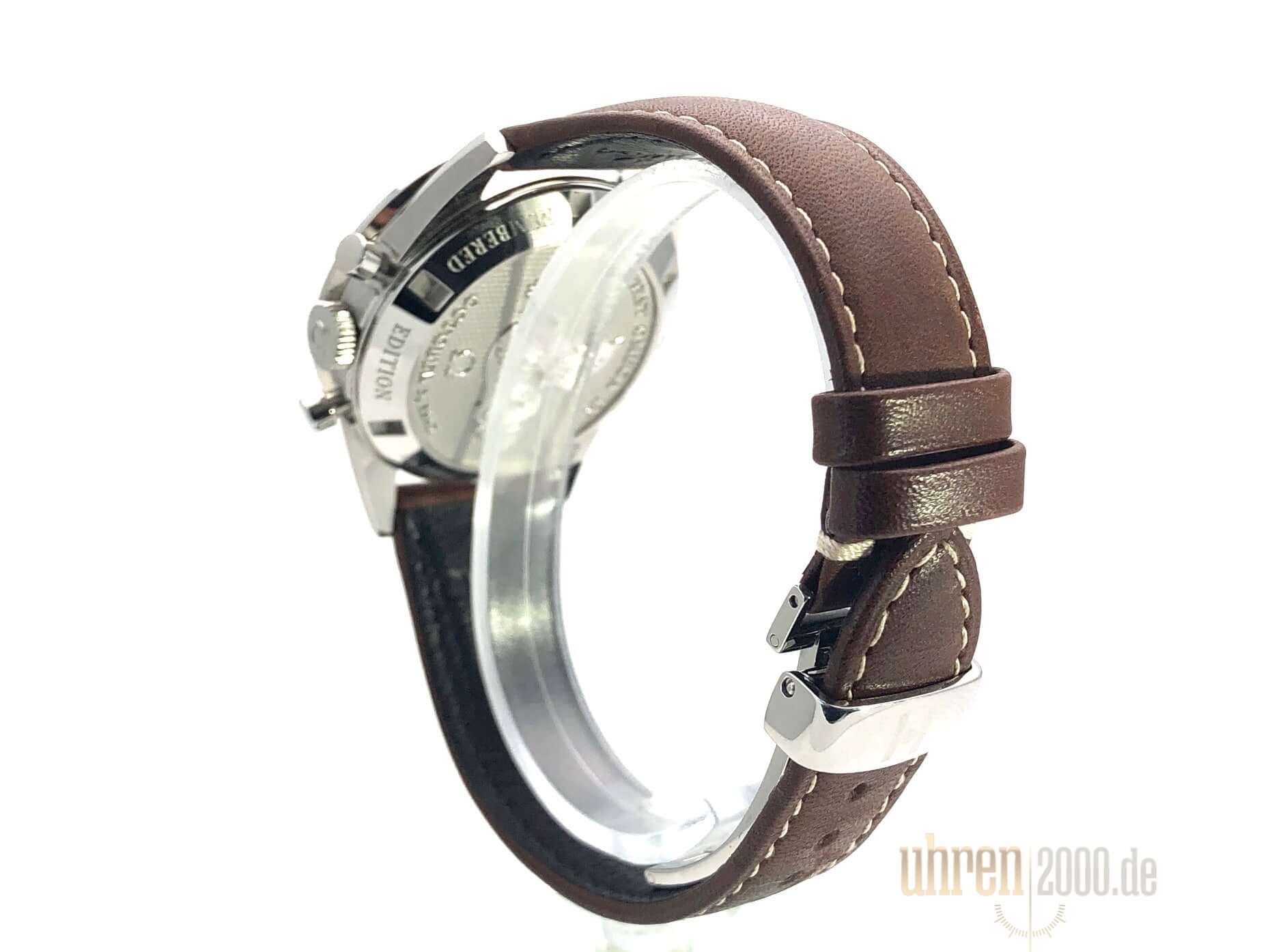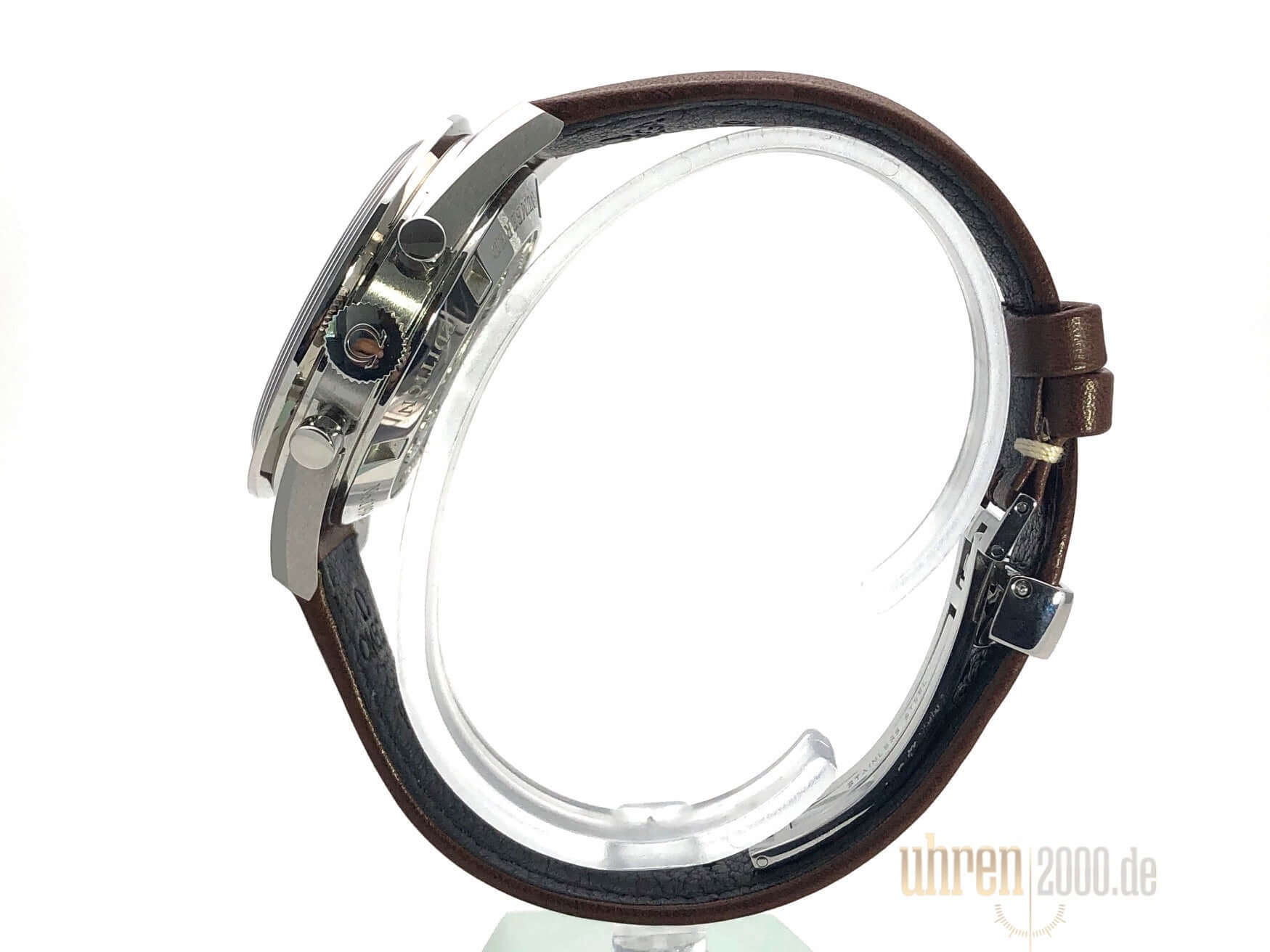Gehäuse aus Edelstahl poliert und satiniert, Gehäusedurchmesser 39,70 mm, Edelstahl Lünette schwarzer Tachymeter Einlage, braunes Lederband mit Faltschließe (Aftermarket), Saphirglas, Handaufzugswerk mit 48 Stunden Gangreserve, Werk Omega Kaliber 1861, schwarzes Zifferblatt mit Strichindizes, Limited Edition, Wasserdicht bis zu 5 bar.