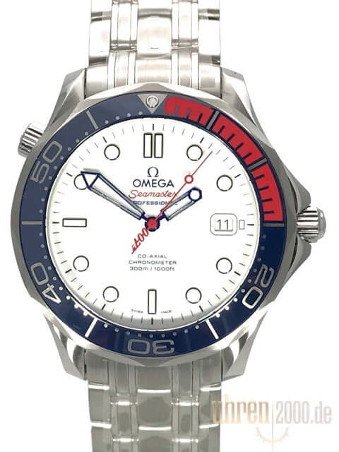Gehäuse aus Edelstahl poliert und satiniert, Gehäusedurchmesser 41 mm, Edelstahl Lünette mit blauer/roter Einlage, 60 Minuten Skala und Leuchtpunkt, einseitig drehbar, Edelstahlband mit Faltschließe, sowie Textilband mit Dornschließe, weißes Zifferblatt mit aufgesetzten Leuchtindexen und Leuchtpunkten, skelettierte Edelstahl Leuchtzeiger, Uhrwerk Automatik, Kaliber Omega 2507 mit Co-Axial Hemmung, 27 Steine, 25.200 A/h, Gangreserve ca. 48 Stunden, Datum, Chronometer mit COSC Zeugnis, Saphirglas gewölbt und kratzfest, doppelseitig entspiegelt, Krone verschraubt mit Flankenschutz, Edelstahlboden verschraubt und graviert, Sichtfenster, Wasserdicht bis zu 30 bar, limited Edition.