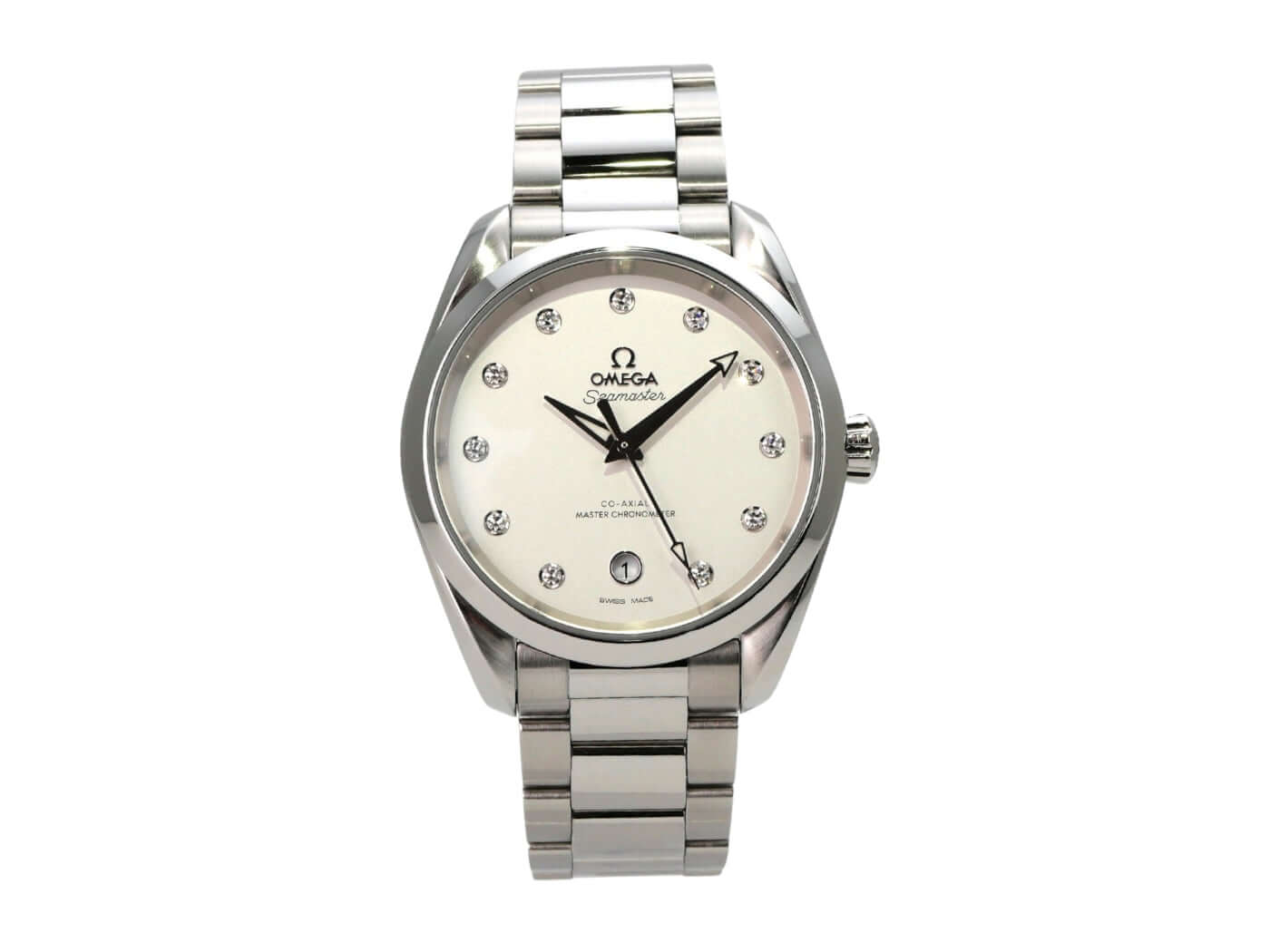 Gehäuse aus Edelstahl poliert und satiniert, Gehäusedurchmesser 38 mm, Lünette aus Edelstahl glatt und poliert, Edelstahlarmband poliert und satiniert, silberfarbenes Zifferblatt mit Diamanten besetzt, Zeiger mit Leuchtspitze, Uhrwerk Automatik, Kaliber Omega 8800, Co-Axial Hemmung, Gangreserve ca. 55 Stunden, Datumsanzeige, Master Chronometer, Saphirglas, Krone verschraubbar, Edelstahlboden verschraubt und graviert, Saphirglasboden, wasserdicht bis zu 15 bar.