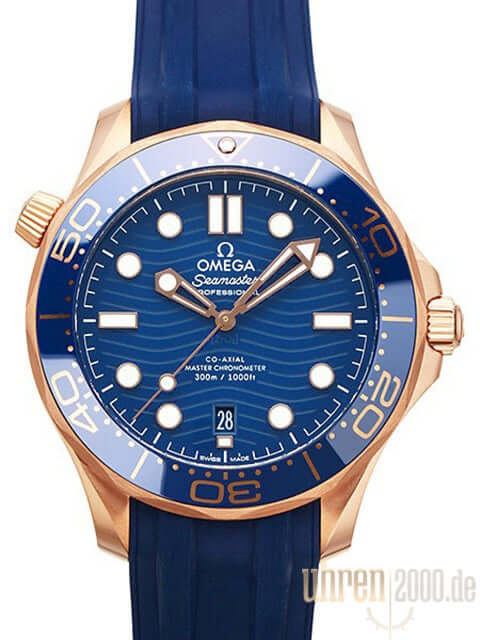 Gehäuse aus 18 kt Rotgold poliert und satiniert, Gehäusedurchmesser 42 mm, 18 kt Rotgold Lünette mit blauer Keramikeinlage, 60 Minuten Skala und Leuchtpunkt, einseitig drehbar, blaues Kauschukband mit Dornschließe, blaues Zifferblatt mit aufgesetzten Leuchtindizes und Leuchtpunkten, skelettierte Leuchtzeiger, Uhrwerk Automatik, Kaliber Omega 8801 mit Co-Axial Hemmung, 35 Steine, 25.200 A/h, Gangreserve ca. 55 Stunden, Datum, Chronometer, Heliumventil, Saphirglas gewölbt und kratzfest, doppelseitig entspiegelt, Krone verschraubbar mit Flankenschutz, Rotgoldboden verschraubt mit Sichtfenster, Wasserdicht bis zu 30 bar.