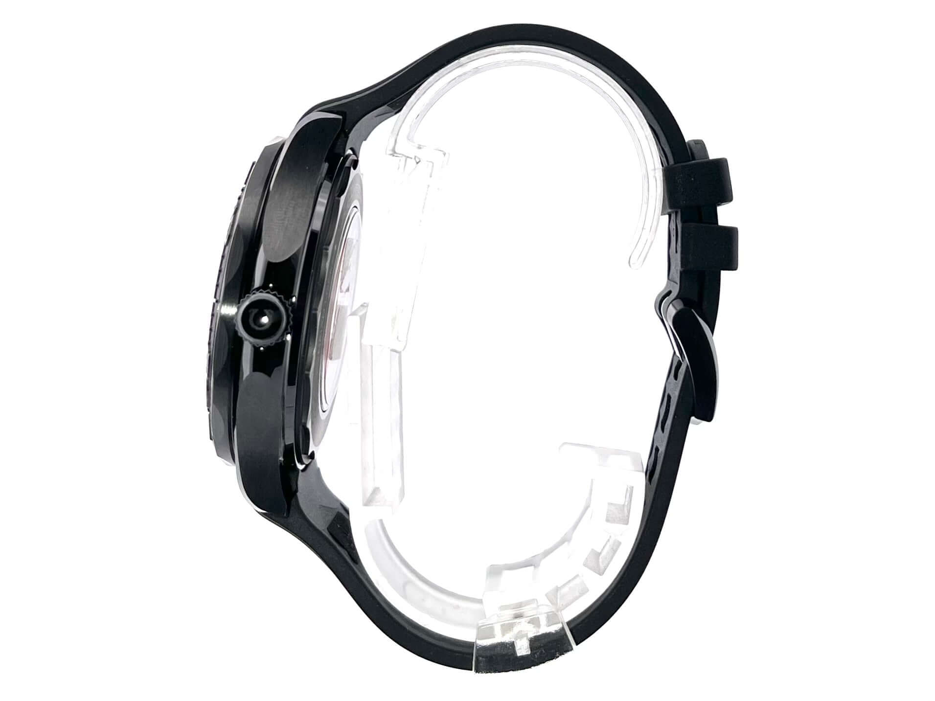 Gehäuse aus Keramik poliert und satiniert, Gehäusedurchmesser 43,5 mm, Keramik Lünette, 60 Minuten Skala und Leuchtpunkt, einseitig drehbar, schwarzes Kauschukband mit Dornschließe, schwarzes Zifferblatt mit aufgesetzten Leuchtindizes und Leuchtpunkten, skelettierte Leuchtzeiger, Uhrwerk Automatik, Kaliber Omega 8806 mit Co-Axial Hemmung, 35 Steine, 25.200 A/h, Gangreserve ca. 55 Stunden, Chronometer, Heliumventil, Saphirglas gewölbt und kratzfest, doppelseitig entspiegelt, Krone verschraubbar mit Flankenschutz, Titanboden verschraubt mit Sichtfenster, Wasserdicht bis zu 30 bar.
