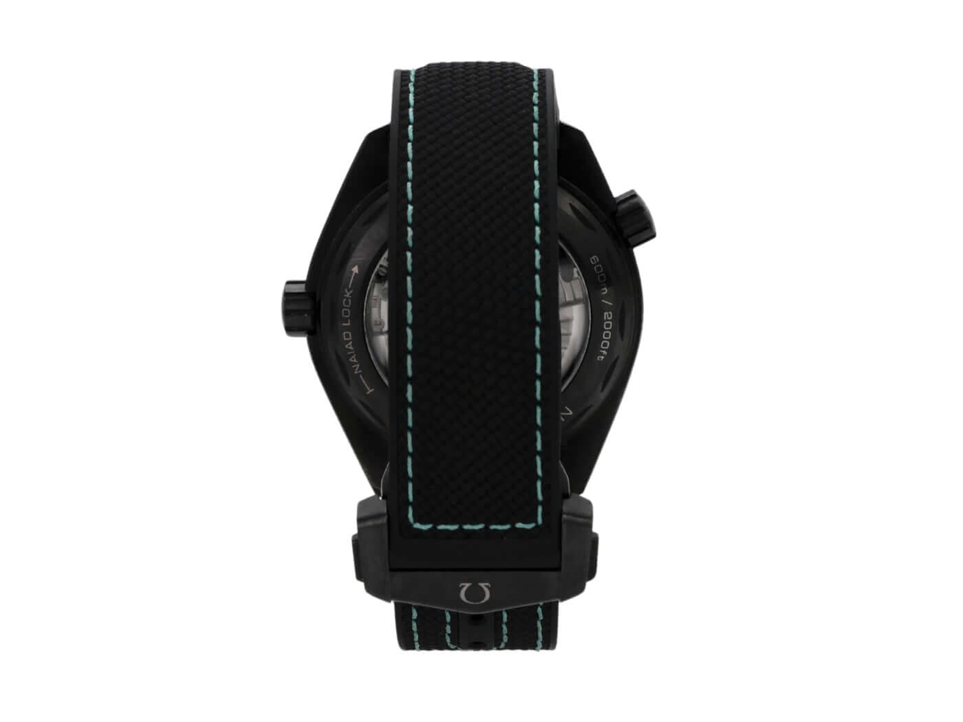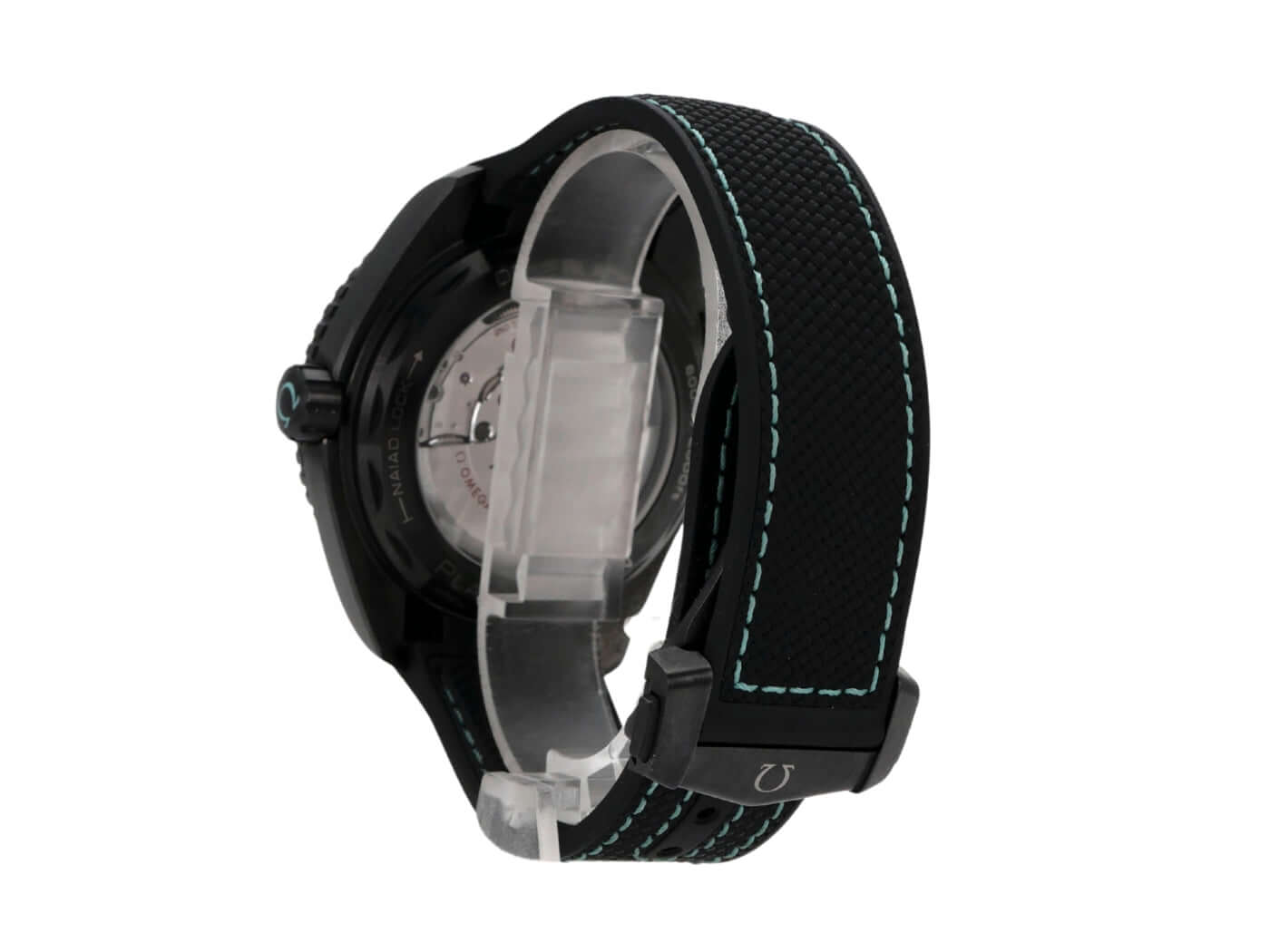 Gehäuse aus Keramik poliert und satiniert, Gehäusedurchmesser 45,5 mm, Lünette aus schwarzer Keramik, 60 Minuten Skala und Leuchtpunkt, einseitig drehbar, schwarzes Kautschukband mit Sicherheitsfaltschließe, schwarzes Keramikzifferblatt mit aufgesetzten Leuchtindizes, Leuchtzeiger, Automatik, Kaliber Omega 8938, Co-Axial Hemmung, Gangreserve ca. 60 Stunden, Datumsanzeige, GMT, Master Chronometer, Antimagnetisches Uhrwerk das einer Belastung von über 15.000 Gauß standhält, Saphirglas, Krone verschraubt, Saphirglasboden, wasserdicht bis zu 15 bar.