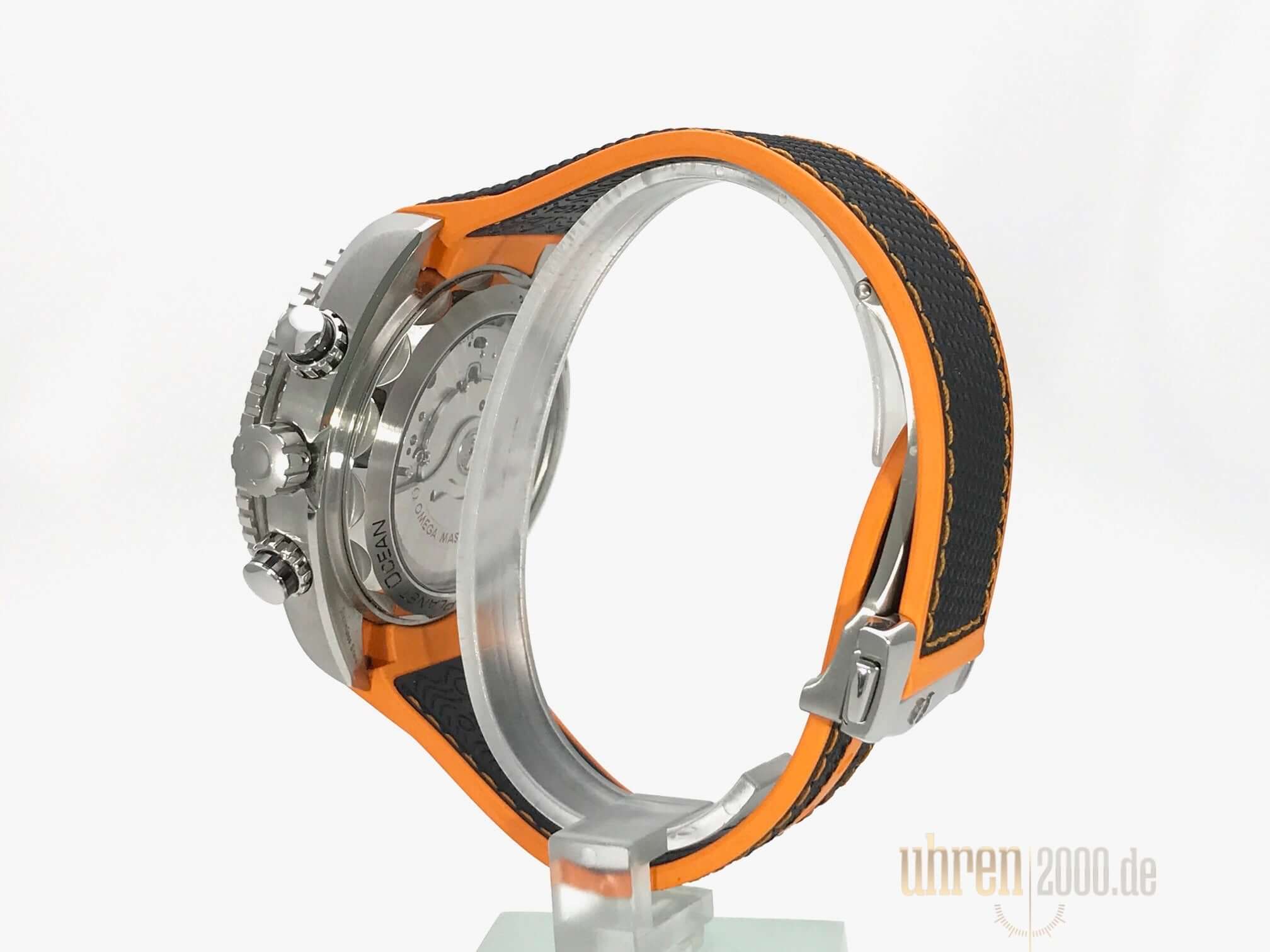 Gehäuse aus Edelstahl poliert und satiniert, Gehäusedurchmesser 45,5 mm, Gehäusehöhe 18,9 mm, schwarze Keramiklünette mit orangefarbenem Kautschuk, 60 Minuten Skala und Leuchtpunkt, einseitig drehbar, schwarz / orangefarbenes Kautschukarmband mit orangefarbenen Nähten, schwarzes Keramikzifferblatt mit aufgesetzten Leuchtindexen, orangefarbene arabische Ziffer 12, Leuchtzeiger, Automatikwerk, Chronograph, Chronometer, Kaliber Omega 9900 mit Co-Axial, 28.800 A/h, Gangreserve ca. 60 Stunden, kleine Sekunde, Datumsanzeige, Saphirglas, verschraubte Krone, Heliumventil, Edelstahlboden mit Saphirglas verschraubt und graviert, Wasserdicht bis zu 60 bar.
