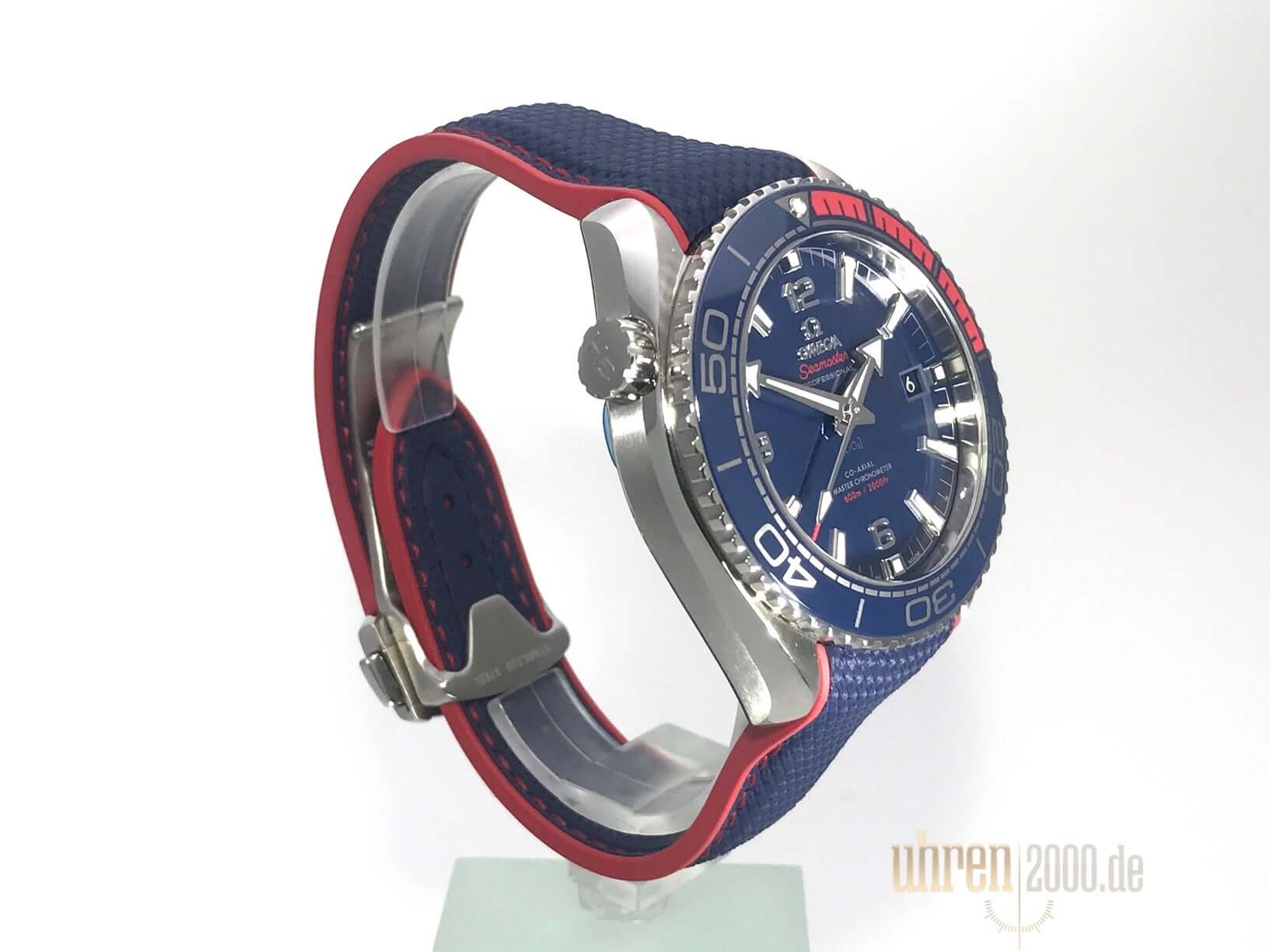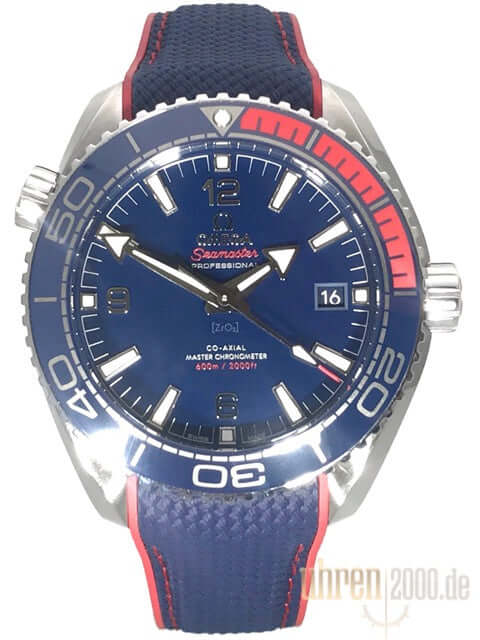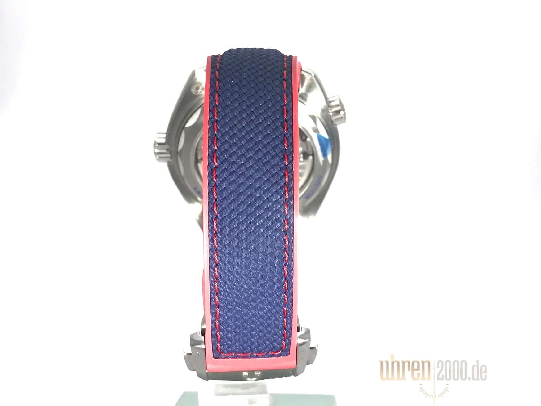 Gehäuse aus Edelstahl poliert und satiniert, Gehäusedurchmesser 43,5 mm, Gehäusehöhe 16,5 mm, blaue Keramiklünette mit rotfarbenem Kautschuk, 60 Minuten Skala und Leuchtpunkt, einseitig drehbar, blau / rotfarbenes Kautschukarmband mit rotfarbenen Nähten, blaues Zifferblatt mit aufgesetzten Leuchtindexen, arabische Ziffern 6 9 12, Leuchtzeiger, Uhrwerk Automatik, Master Chronometer, Kaliber Omega 8900 mit Co-Axial Hemmung, 39 Steine, 25.200 A/h, Gangreserve ca. 60 Stunden, Datumsanzeige, Heliumventil, Saphirglas, verschraubte Krone, Edelstahlboden verschraubt, graviert mit Saphirglasboden, Wasserdicht bis 60 bar, limited Edition.
