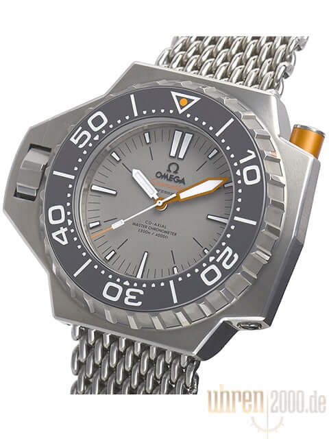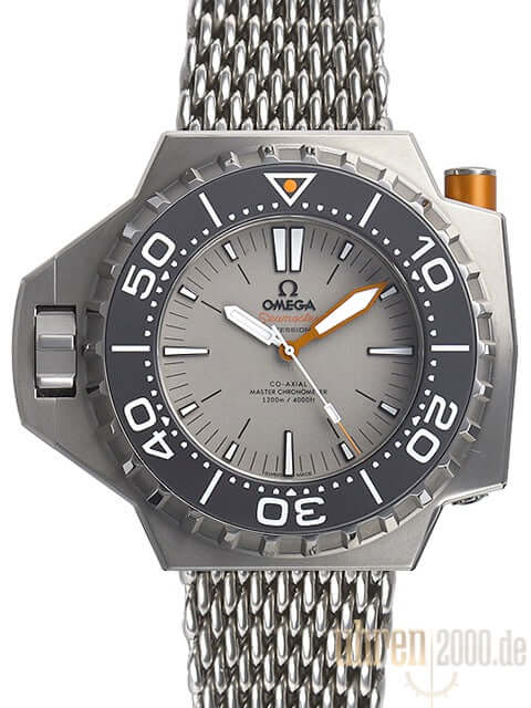 Gehäuse aus Titan poliert und satiniert, Länge 55 mm x Breite 48 mm, Höhe 17,5 mm, Titan Lünette mit grauer Keramikeinlage, 60 Minuten Skala und Leuchtpunkt, beidseitig drehbar, Helium-Austritts Ventil, Milanese-Armband aus poliertem Titan Grade 2 geflochten mit Faltschließe, graues Zifferblatt mit aufgesetzten Leuchtindexen, Leuchtzeiger, Automatikwerk, Omega Co-Axial Kaliber 8912, 39 Steine, 25.200 A/h, Gangreserve ca. 60 Stunden, Master Chronometer mit Zertifikat, bombiertes, beidseitig entspiegeltes Saphirglas, Titan Krone links verschraubt mit Flankenschutz, Titanboden verschraubt mit Sichtboden, Wasserdicht bis zu 120 bar.